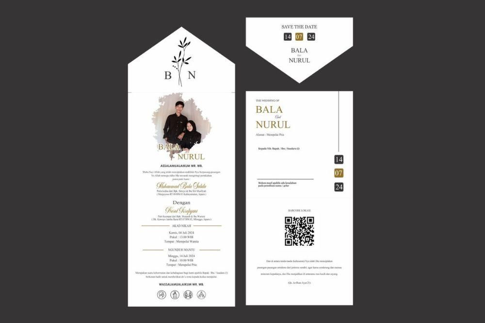 Jangan lupa untuk tampilkan foto di bagian depan undangan dan barcode lokasi untuk mempermudah pencarian tempat acara, ya. -
