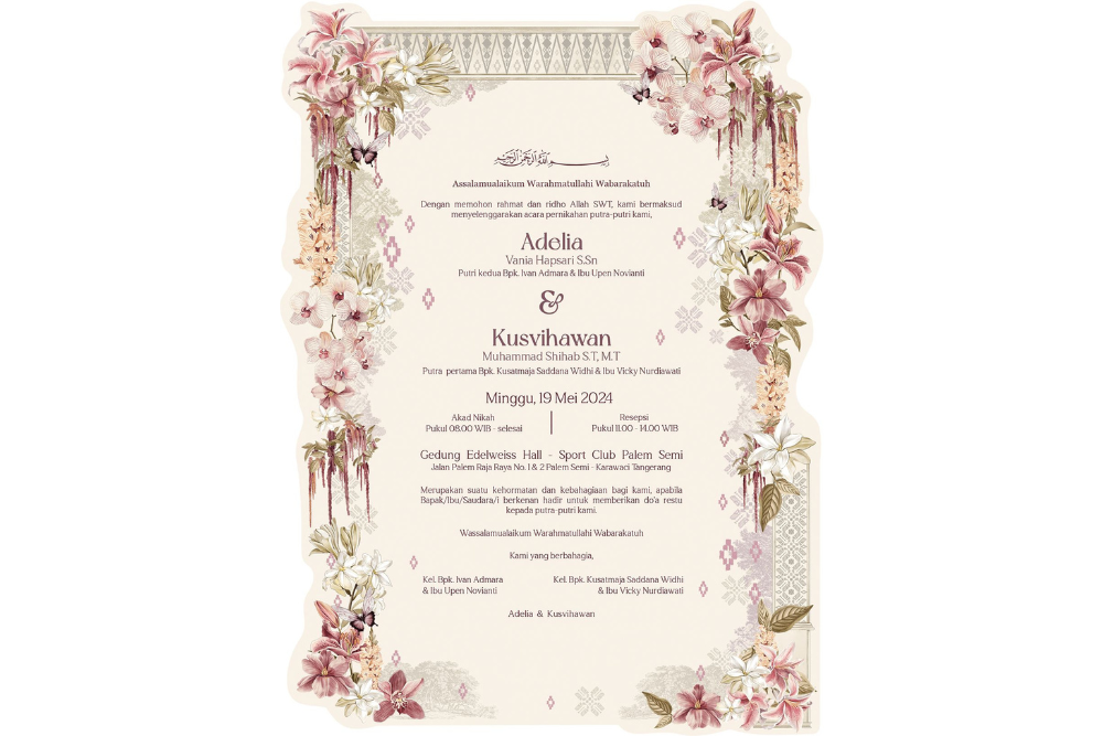 Tema floral yang estetik sangat cocok untuk digunakan pada undangan ngunduh mantu. Tak hanya tampak cantik, melainkan juga memberi kesan elegan pada undangan.