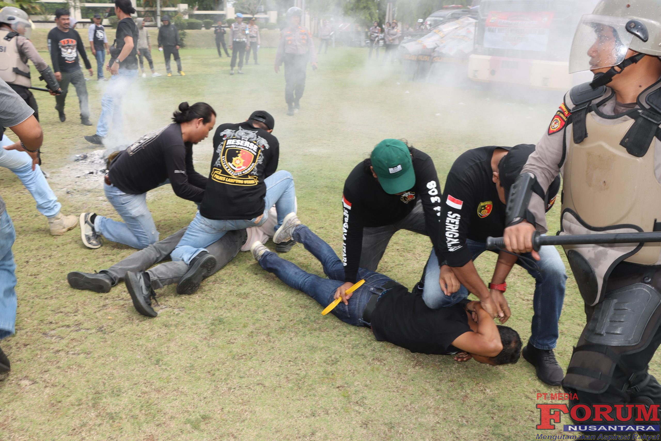 Dalam simulasi itu juga ditampilkan peran tim negosiator Polwan Polres Lampung Utara yang berupaya menenangkan massa melalui dialog humanis. Namun ketika situasi memanas, petugas terpaksa mengambil tindakan tegas dan terukur terhadap oknum pengunjuk rasa yang bersikap anarkis.