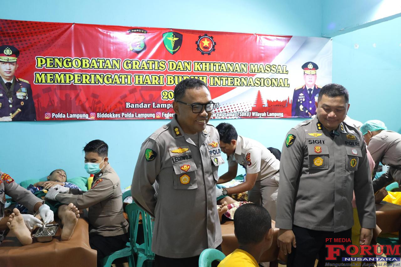 Baktikes Polri dalam rangka hari buruh di Lampung ini juga di ikuti ratusan peserta, dengan rincian 50 orang anak dikhitan geratis, Pengobatan serta Pemeriksaan kesehatan Geratis bagi lansia maupun balita dan anak-anak yang di ikuti 114 Orang.(*)
