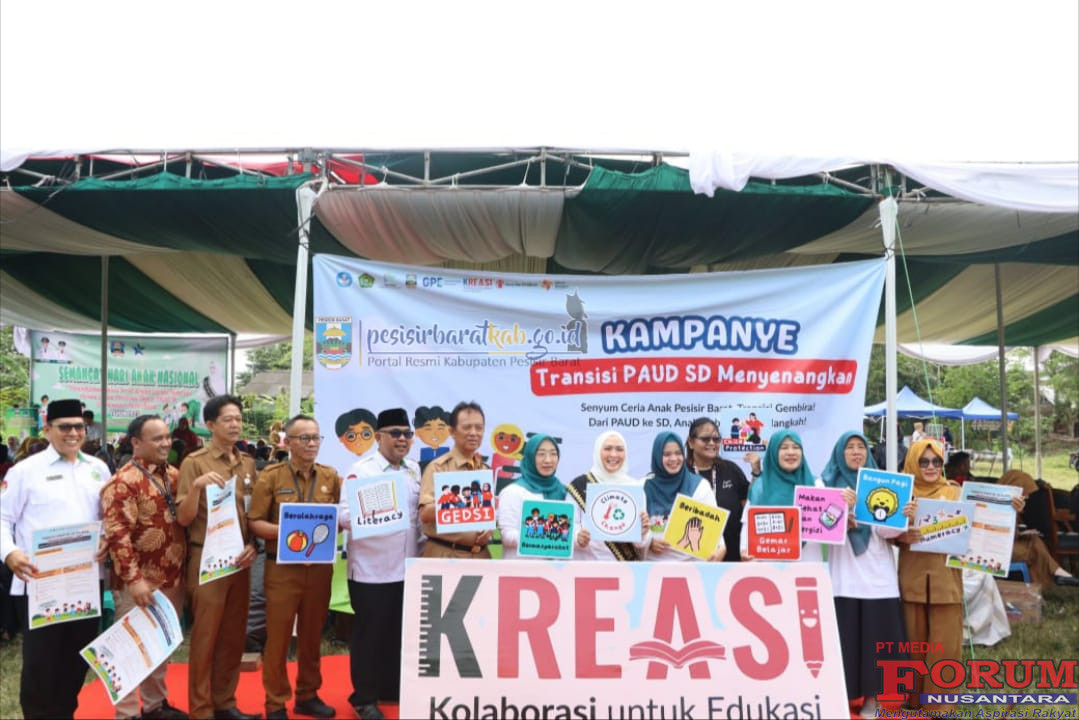 ForumNusantaranews.com PESISIR BARAT – Asisten I Bidang Pemerintahan dan Kesejahteraan Rakyat Sekretariat Pemerintah Kabupaten (Pemkab) Pesisir Barat (Pesibar), Audi Marpi, S.Pd., M.M., secara resmi membuka kegiatan Kampanye Transisi Pendidikan Anak Usia Dini (PAUD) ke Sekolah Dasar (SD) yang Menyenangkan, Selasa (29/7/2025), di Lapangan Pekon Seray, Kecamatan Pesisir Tengah.