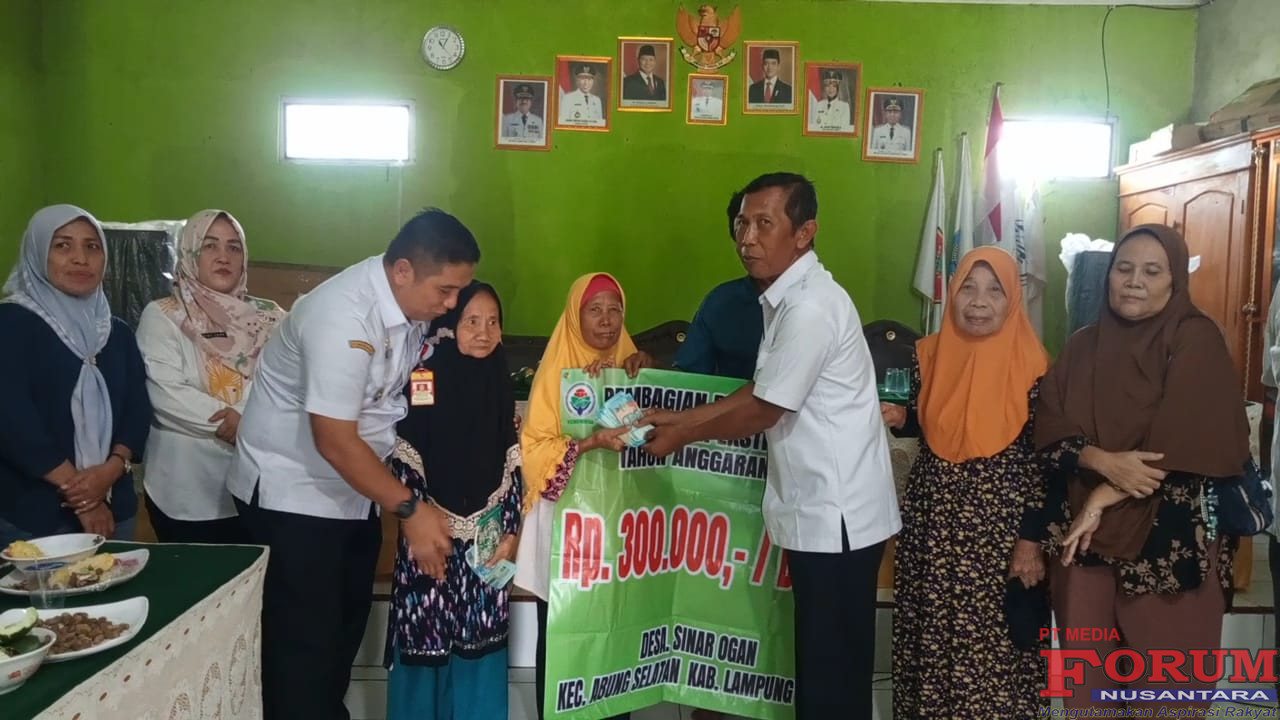 usai melaksanakan PKTD, yang dihadiri oleh Camat Abung Selatan, Dedi Irawan, S.Kom., MM bersama jajarannya, Kepala Desa Sinar Ogan, Sarimun, SH.I bersama Perangkatnya, BPD, Pendamping Desa, serta tokoh masyarakat, menyalurkan Bantuan Langsung tunai (BLT) kepada 33 Keluarga Penerima Manfaat (KPM), untuk 5 bulan, yang dilaksanakan di kantor desa setempat