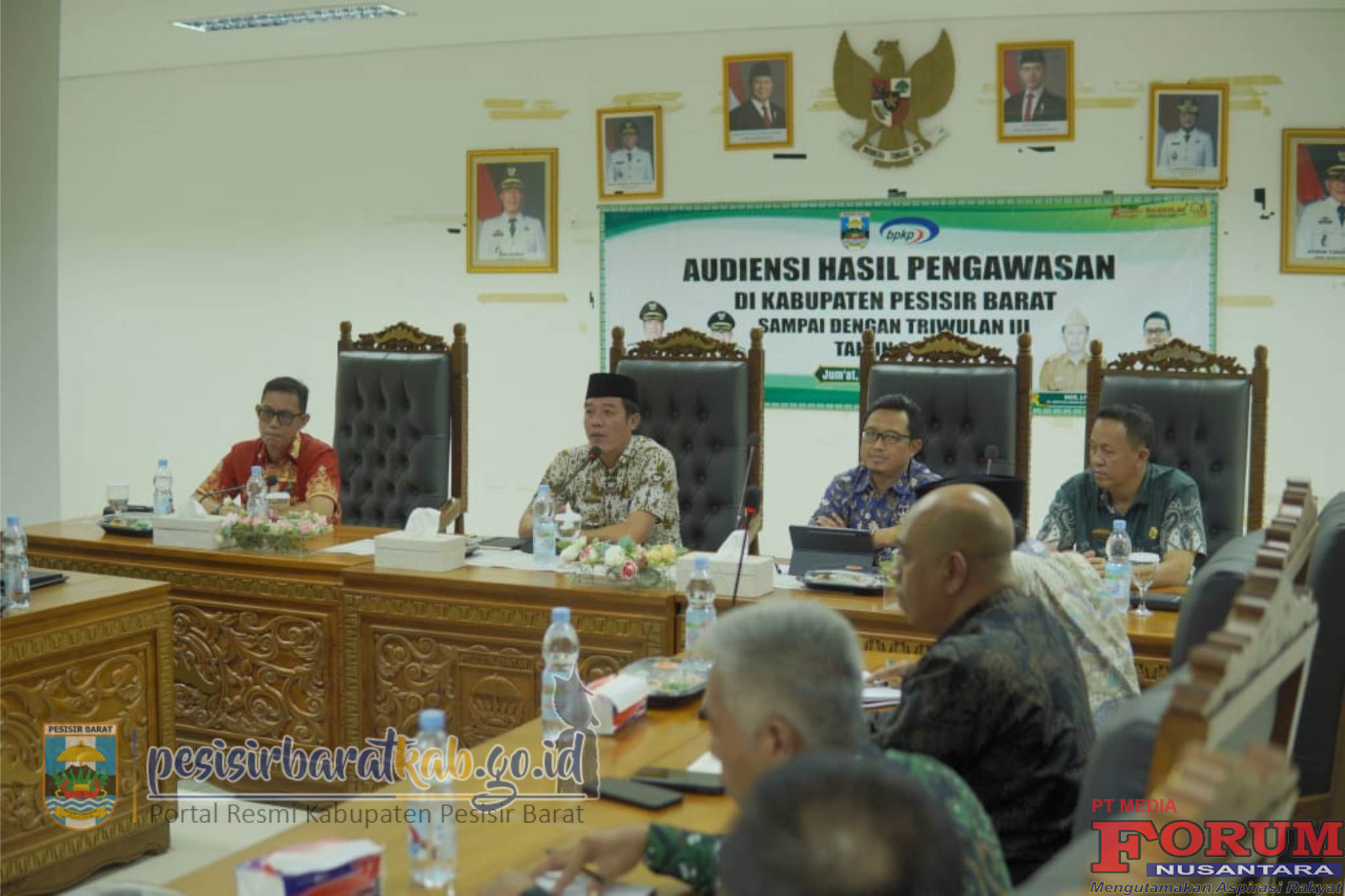 ForumNusantaranews.com PESISIR BARAT-Bupati Pesisir Barat (Pesibar), Dedi Irawan menghadiri audiensi hasil pengawasan di Pesibar sampai dengan triwulan ke II oleh Perwakilan Badan Pemeriksa Keuangan dan Pembangunan (BPKP) Provinsi Lampung, di ruang Payung Agung Lantai 4 Komplek Perkantoran Pemkab Pesibar, Jumat (19/9/2025).