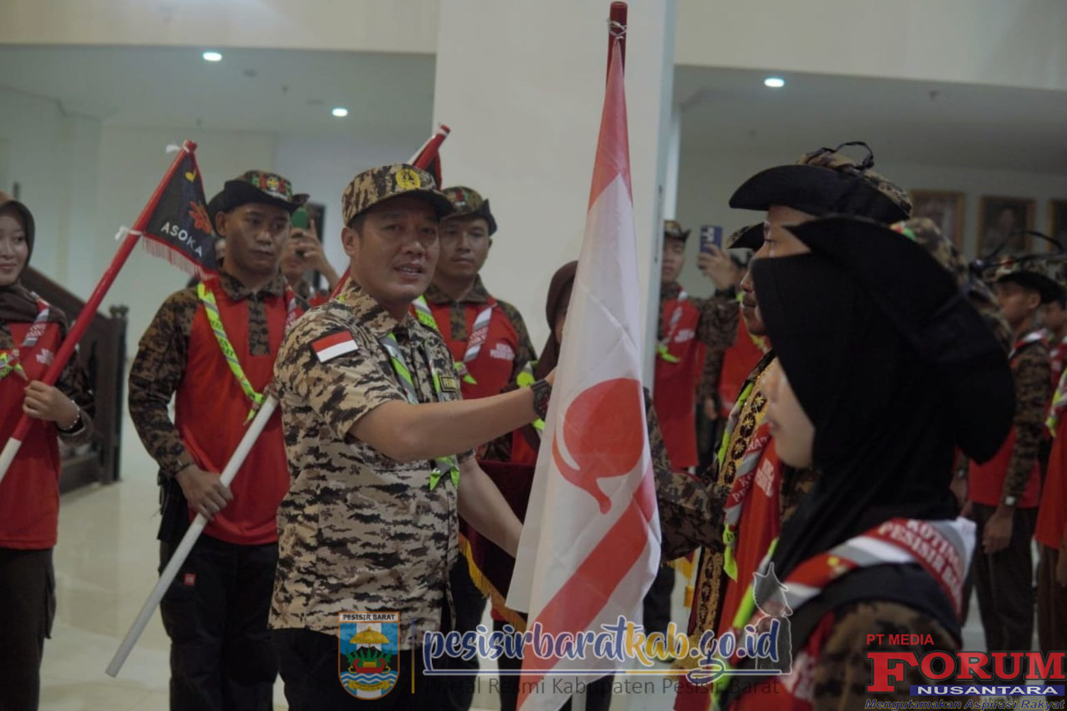 ForumNusantaranews.com PESISIR BARAT-Bupati Pesisir Barat (Pesibar), Dedi Irawan, melepas peserta Jambore Daerah (Jamda) Lampung ke VII Kontingen Kwartir Cabang (Kwarcab) Gerakan Pramuka Pesibar, di Lobi Lantai 1 Komplek Perkantoran Pemkab Pesibar, Minggu (12/10/2025).