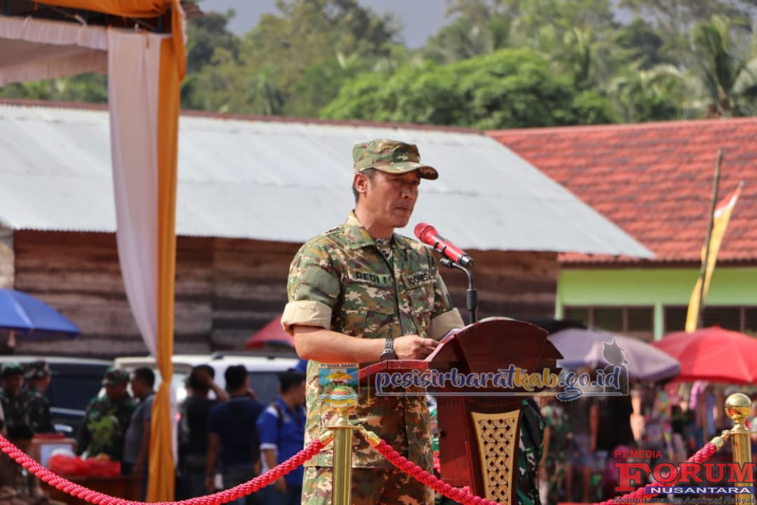 ForumNusantaranews.com PESISIR BARAT-Kepala Dinas Komunikasi Informatika Statistik dan Persandian Kabupaten Pesisir Barat Suryadi, S.IP., M.M., menginformasikan bahwa, Bupati Pesisir Barat (Pesibar), Dedi Irawan, memimpin langsung upacara pembukaan TNI Manunggal Membangun Desa (TMMD) ke-124 Tahun 2025 di Lapangan Pekon Pemerihan Kecamatan Bangkunat, yang menjadi tanda dimulainya kegiatan Kodim 0422/Lampung Barat (Lambar) tersebut, Selasa (6/5/2025).