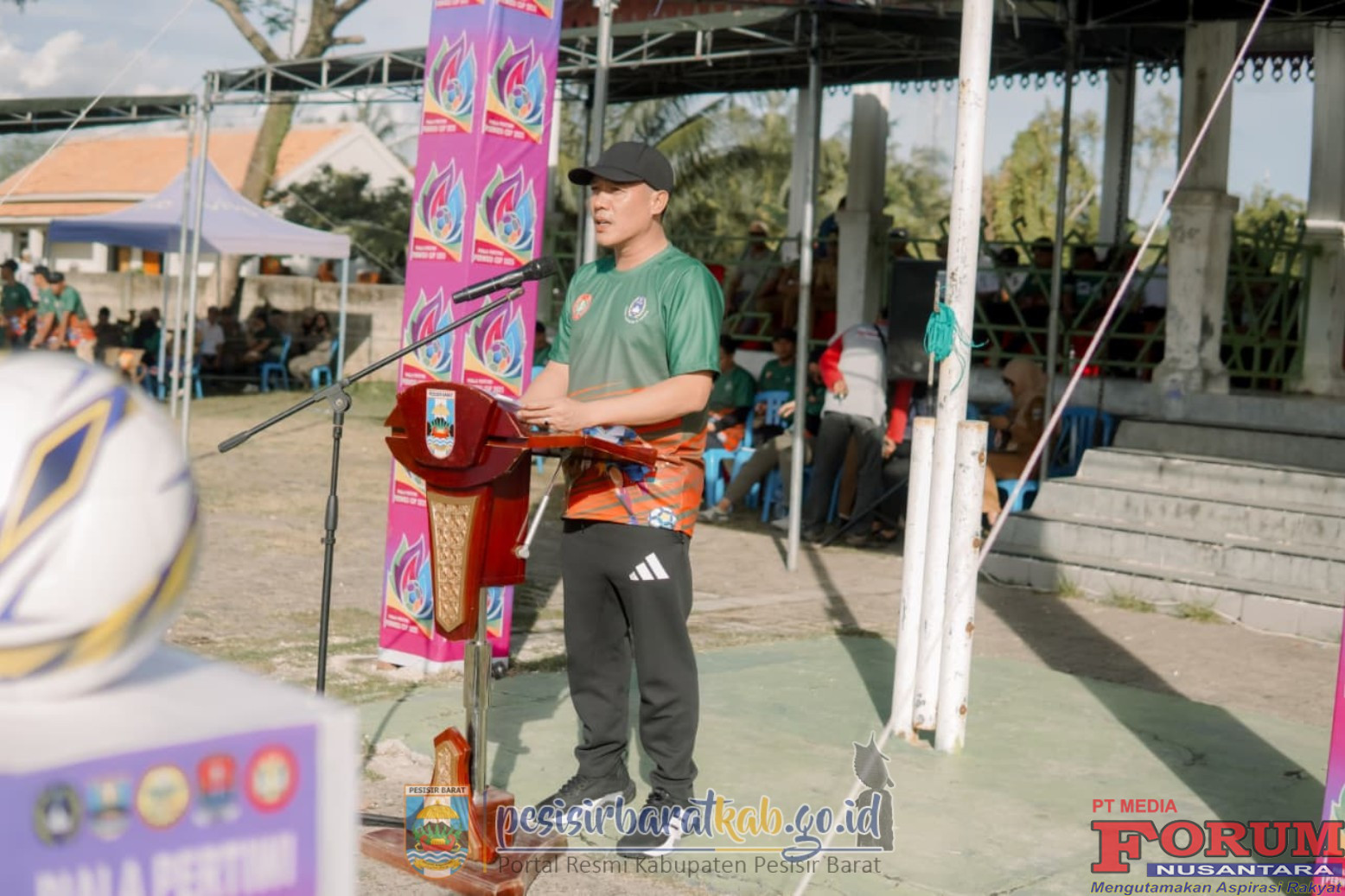 ForumNusantaranews.com PESISIR BARAT-Bupati Pesisir Barat (Pesibar), Dedi Irawan, resmi membuka open turnamen Persatuan Wanita Olah Raga Indonesia (Perwosi) Cup Tahun 2025 dalam rangka memperingati Hari Ulang Tahun (HUT) Persatuan Guru Republik Indonesia (PGRI) dan Hari Guru Nasional Tahun 2025, di Lapangan Merdeka Labuhan Jukung Kecamatan Pesisir Tengah, Selasa (25/11/2025).
