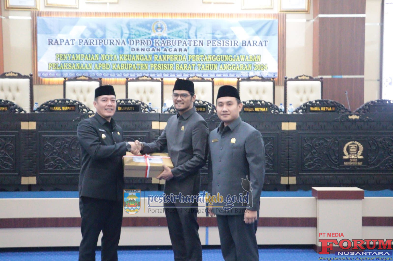 ForumNusantaranews.com PESISIR BARAT-Bupati Pesisir Barat (Pesibar), Dedi Irawan, menghadiri rapat paripurna Dewan Perwakilan Rakyat Daerah (DPRD) dengan agenda Penyampaian Rancangan Peraturan Daerah (Ranperda) Pesibar tentang Rencana Pembangunan Jangka Menengah Daerah (RPJMD) Tahun 2025-2029, di ruang rapat paripurna DPRD Pesibar, Selasa (8/7/2025).