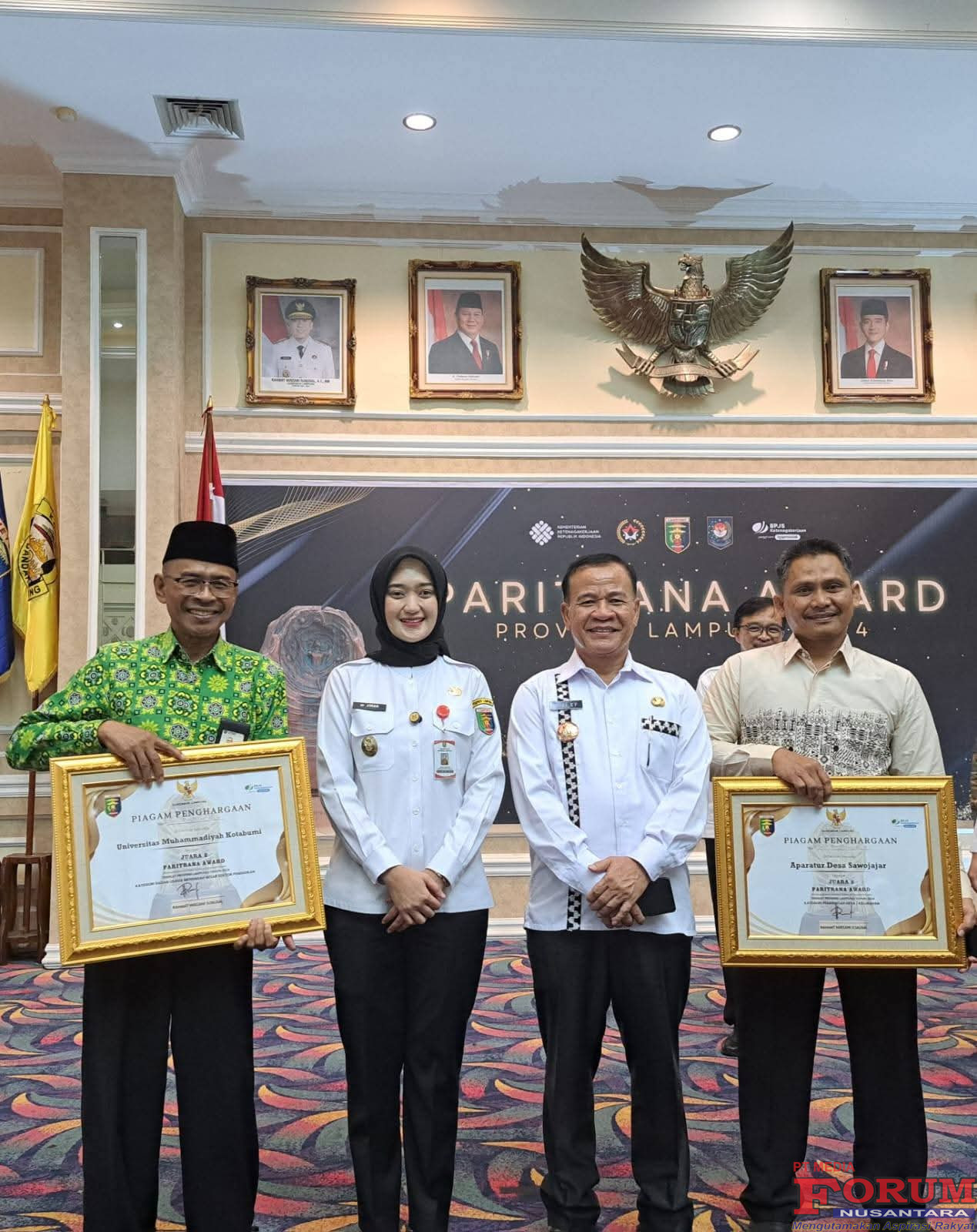 ForumNusantaranews.com Bandar Lampung – Bupati Lampung Utara, Dr. Ir. Hamartoni Ahadis, M.Si., diwakili oleh Drs. Nozy Efialis, M.Si., selaku Staf Ahli Bupati Lampung Utara, menghadiri acara Penyerahan Piagam Pemenang Paritrana Award Tingkat Provinsi Lampung. Kegiatan ini berlangsung di Balai Keratun Kantor Gubernur Provinsi Lampung, Rabu (13/8/2025).