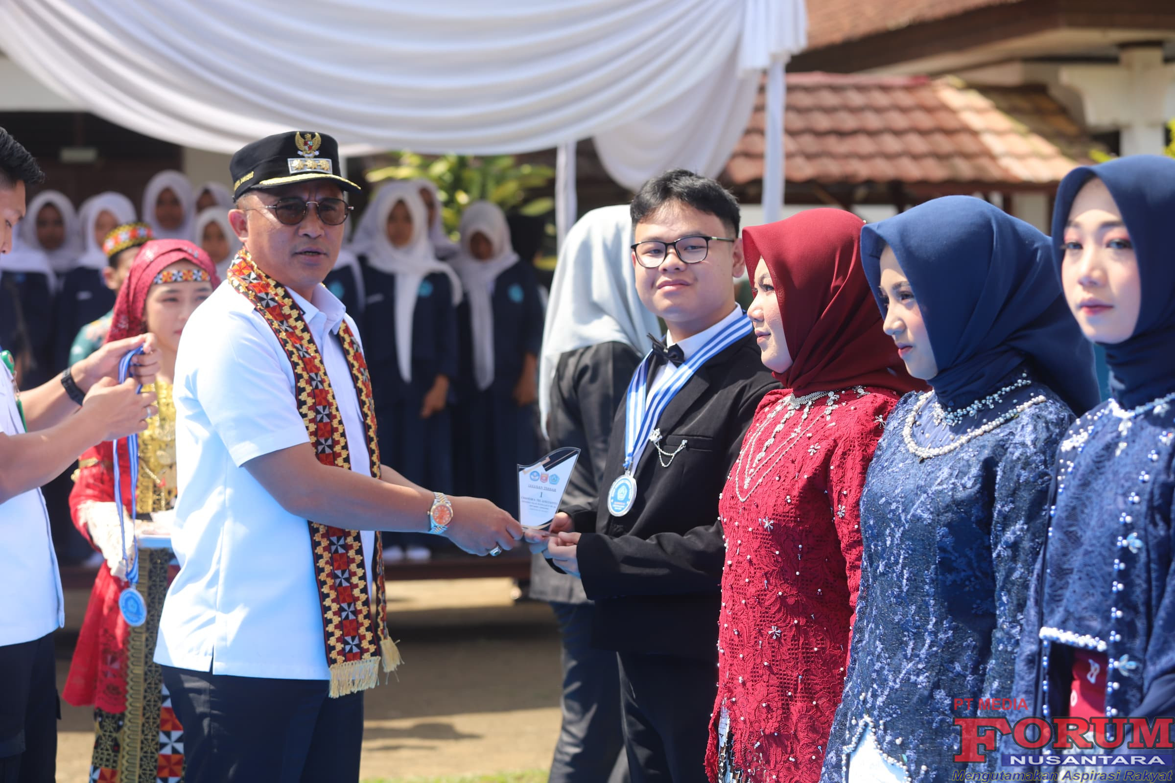 Dalam kesempatan tersebut Bupati Parosil berkesempatan menyematkan medali kepada siswa siswi berprestasi sebagai bentuk apresiasi bersamaan dengan Ketua DPRD Lampung Barat Edi Novial dan Anggotanya serta para dewan guru.(Apri)