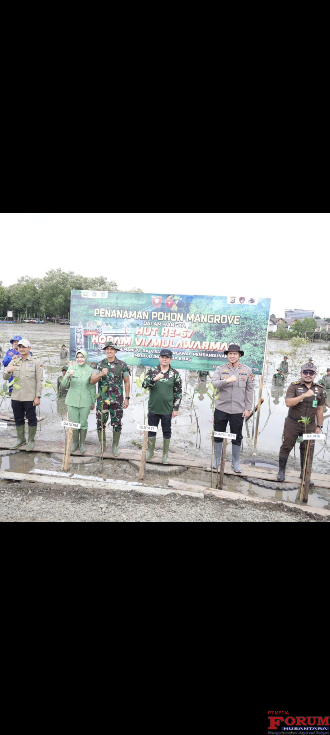 Tanah Bumbu,Rabu 02 Juli 2025.Memperingati HUT ke-67 Kodam VI/Mulawarman,Kodim 1022/Tanah Bumbu menggelar kegiatan penanaman mangrove di wilayah pesisir Kelurahan Tungkaran Pangeran,Kecamatan Simpang Empat,Tanah Bumbu,Pada Rabu (02/07/2025).