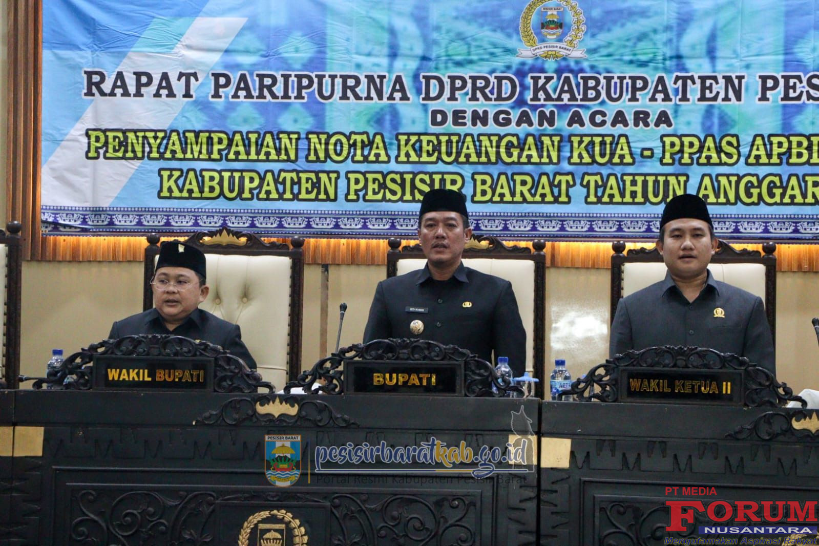 ForumNusantaranews.com PESISIR BARAT-Bupati – Wakil Bupati Pesisir Barat (Pesibar), Dedi Irawan – Irawan Topani, S.H., M.Kn., menghadiri rapat paripurna Dewan Perwakilan Rakyat Daerah (DPRD) Pesibar dengan agenda penyampaian nota keuangan Kebijakan Umum Anggaran-Prioritas Plafon Anggaran Sementara (KUA-PPAS) Anggaran Pendapatan dan Belanja Daerah (APBD) Perubahan Tahun Anggaran 2025, di ruang rapat paripurna DPRD, Selasa (22/7/2025).