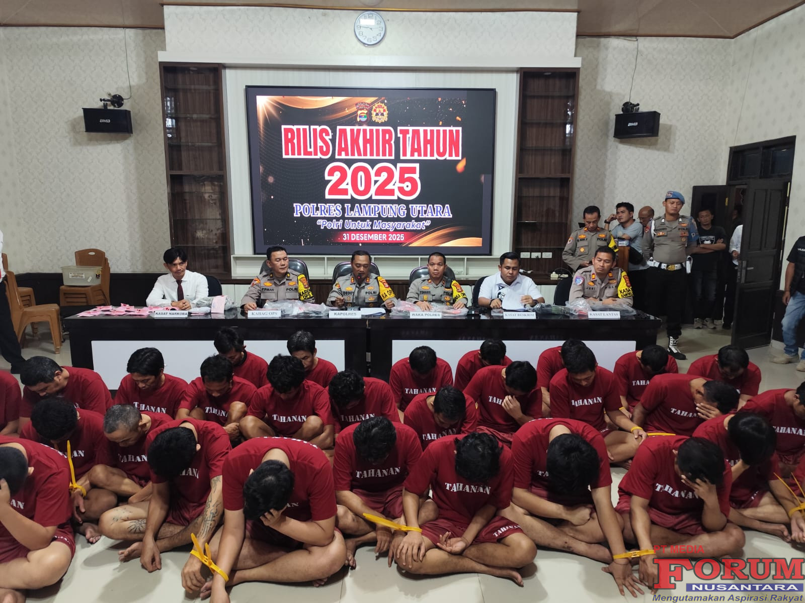 ForumNusantaranews.com LAMPUNG UTARA– Polres Lampung Utara merilis capaian kinerja bidang kriminal, narkoba dan lalulintas sepanjang tahun 2025 dalam Konferensi Pers Akhir Tahun 2025. Rabu (31/12/25).