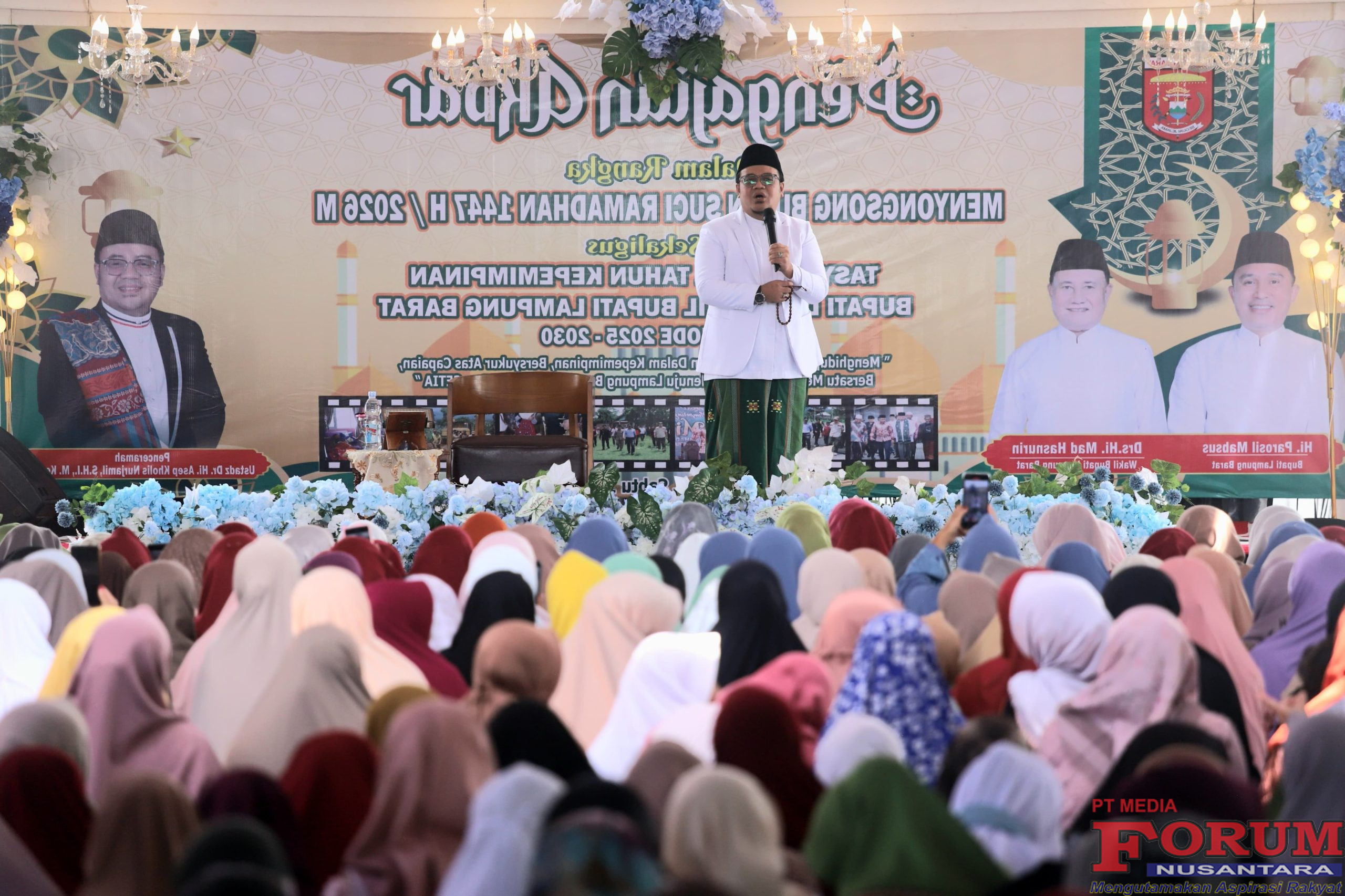 Di tengah lantunan doa dan tausiyah, Bupati Parosil Mabsus menyampaikan ucapan selamat menunaikan ibadah puasa Ramadhan 1447 Hijriyah kepada seluruh masyarakat Lampung Barat.