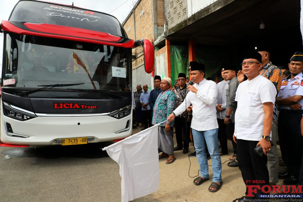 ForumNusantaranews.com Bupati Lampung Barat Parosil Mabsus secara resmi melepas 79 jamaah umroh di Pondok Pesantren Al-Hasyimiah, Pekon Sumber Alam, Kecamatan Air Hitam, Jumat (14/11/2025). Pelepasan berlangsung khidmat dengan dihadiri pengurus ponpes, tokoh masyarakat, serta keluarga jamaah.