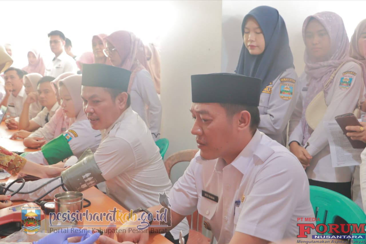 ForumNusantaranews.com PESISIR BARAT-Bupati Pesisir Barat (Pesibar), Dedi Irawan, membuka kegiatan Bakti Sosial (Baksos) donor darah dalam rangka 100 hari kerja Bupati – Wakil Bupati Pesibar, di Selasar Komplek Perkantoran Pemkab Pesibar, Rabu (4/6/2025).