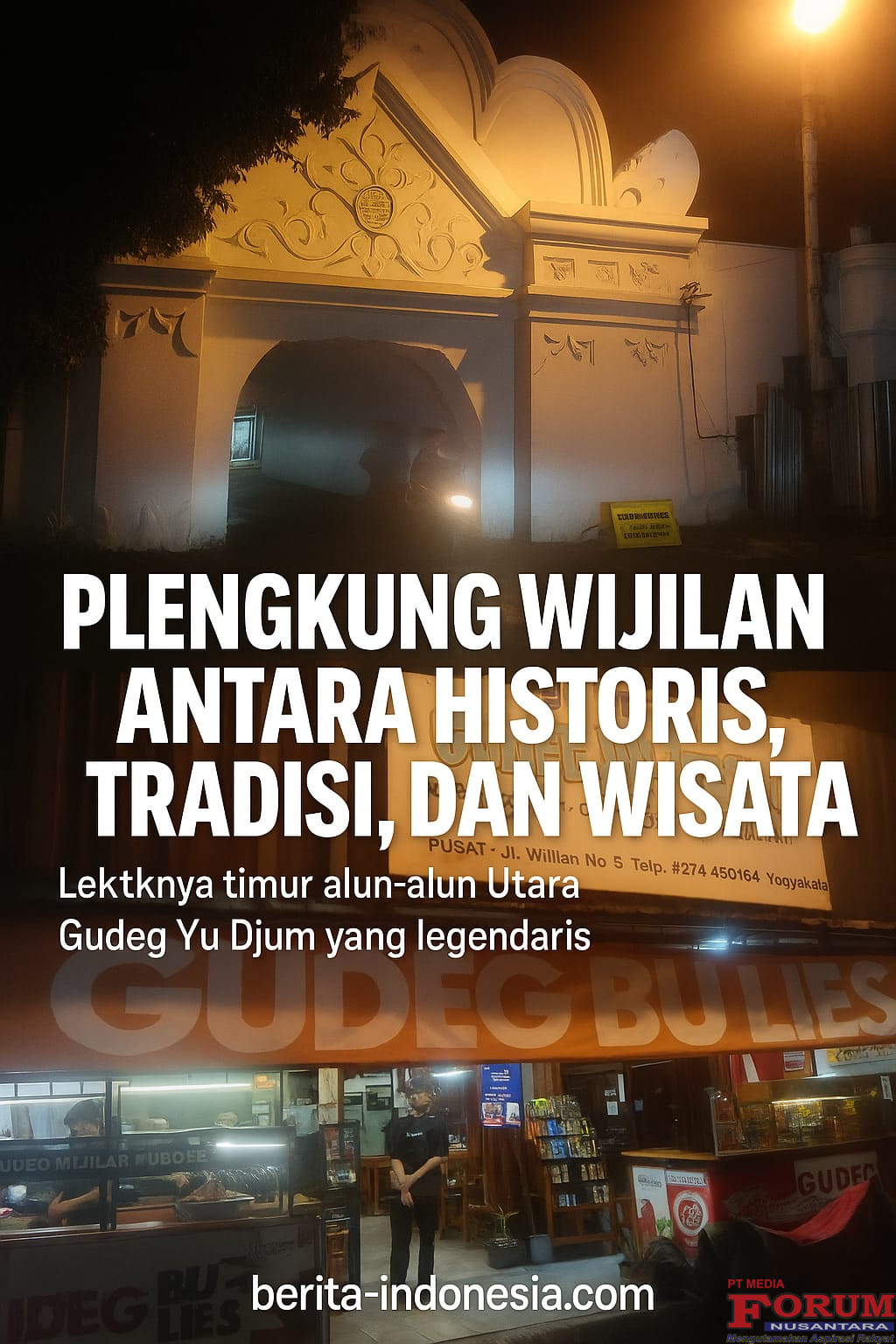 Saat malam tiba, pendar lampu kuning di sekitar plengkung menciptakan nuansa hangat dan klasik, seakan membawa setiap pengunjung kembali ke masa lalu. Antara sejarah, tradisi, dan wisata kuliner — Plengkung Wijilan menjadi potret sempurna wajah Yogyakarta yang tak lekang oleh waktu.(*)