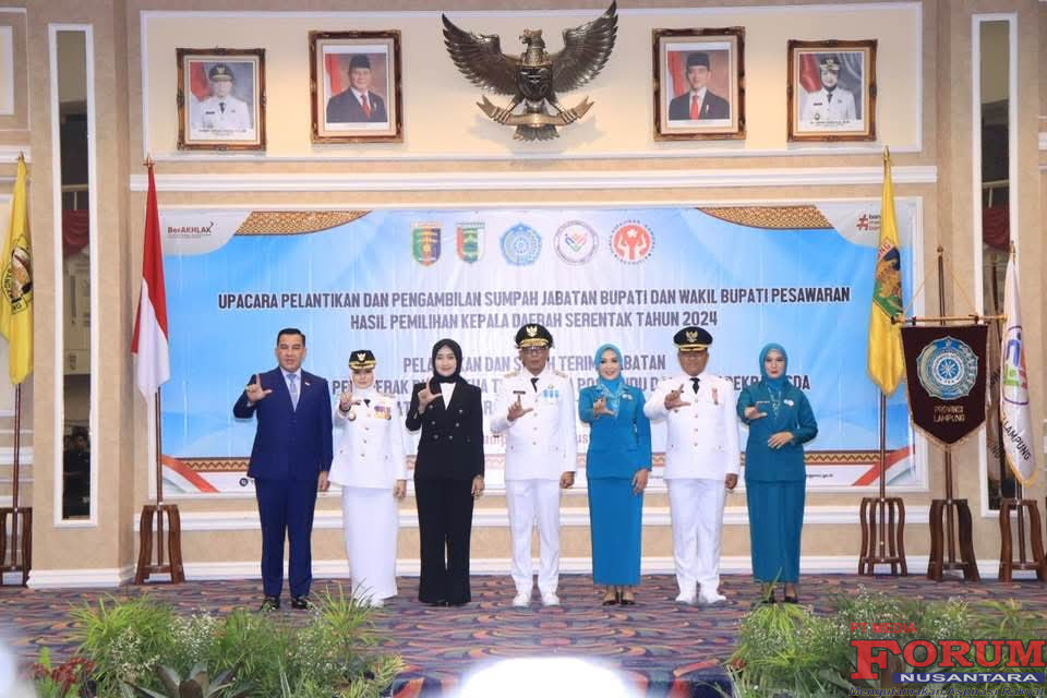 ForumNusantaranews.com BANDARLAMPUNG—Gubernur Lampung, Rahmat Mirzani Djausal melantik Nanda Indira dan Antonius Muhammad Ali sebagai Bupati dan Wakil Bupati Pesawaran periode 2025–2030 di Balai Keratun, Kantor Gubernur Lampung, Rabu (27/08/2025).