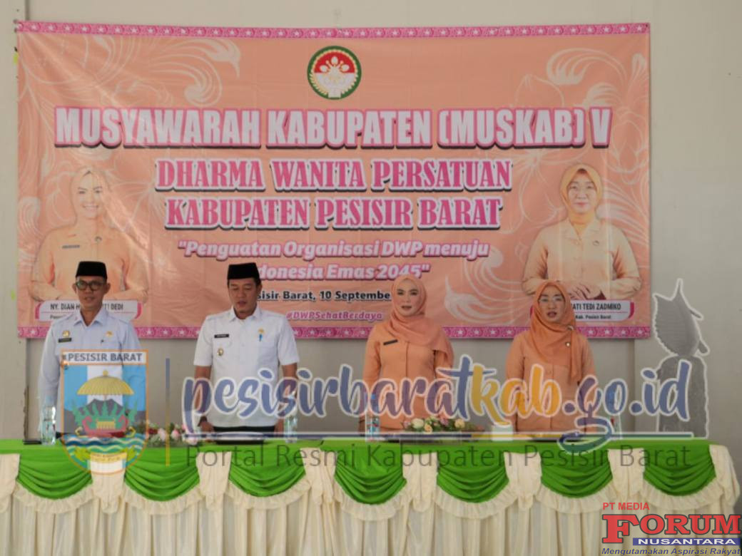 ForumNusantaranews.com PESISIR BARAT-Dharma Wanita Persatuan (DWP) Kabupaten Pesisir Barat (PESIBAR) menggelar Musyawarah Kabupaten (MUSKAB) ke V yang mengusung tema Dengan Penguatan Organisasi DWP Menuju Indonesia Emas 2045, di Aula MAN 1 Krui Kecamatan Pesisir Tengah, Rabu (10/9/2025).