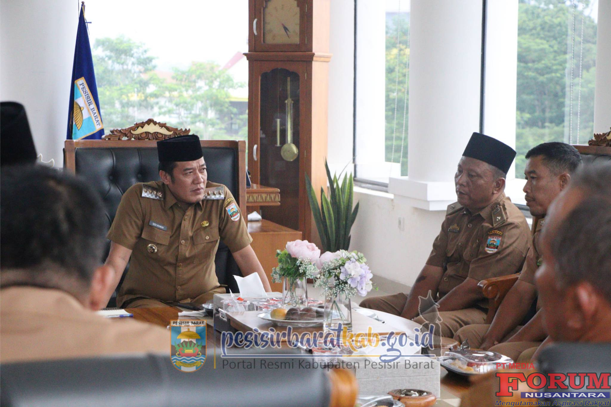 ForumNusantaranews.com PESISIR BARAT-Bupati Pesisir Barat (Pesibar), Dedi Irawan menerima audiensi Asosiasi Pemerintah Desa Seluruh Indonesia (APDESI) Kecamatan Karya Penggawa dan Bangkunat, di ruang kerja Bupati, Lantai 5 Gedung Marga Sai Batin Komplek Perkantoran Pemkab Pesibar, Senin (22/9/2025).