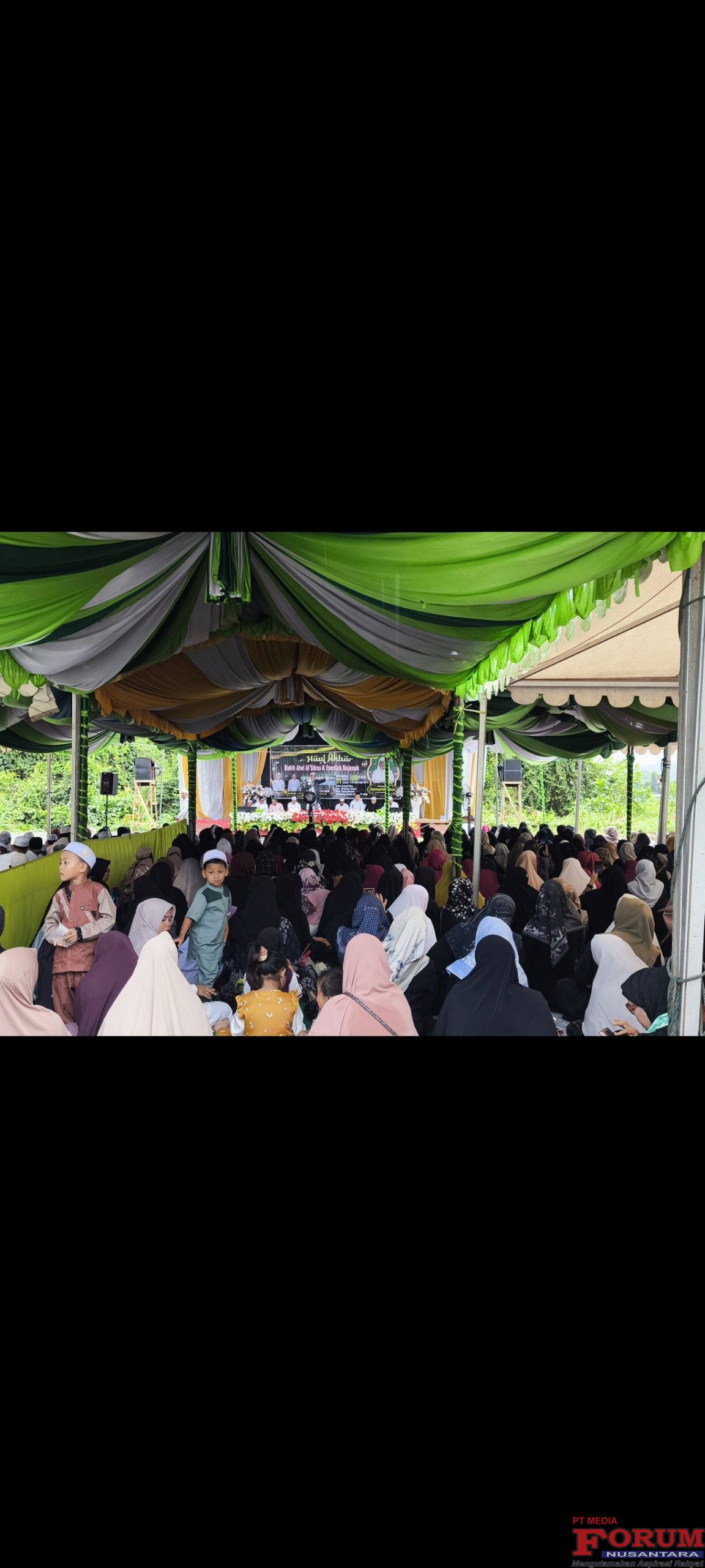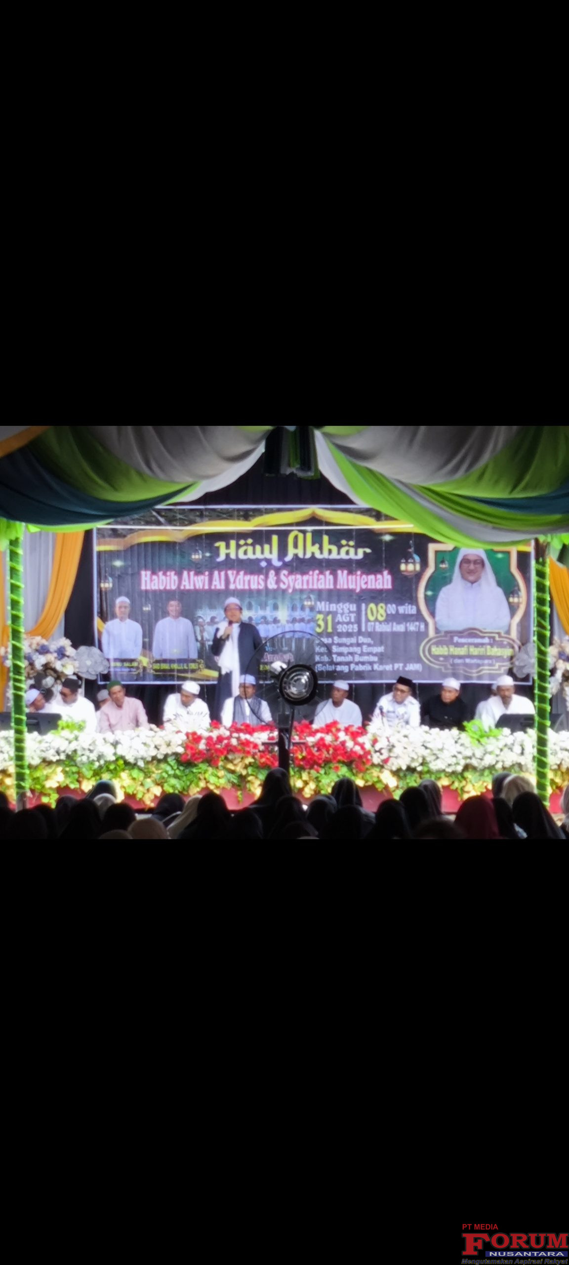 Tanah Bumbu,Minggu 31 Agustus 2025.Peringatan Haul Akbar Habib Alwi Bin Syarif Umar Al-ydrus dan Syarifah Muzenah Al-ydrus yang sama-sama anak dari Syarif Umar Al-ydrus Keramat Tarjun Bin Pangeran Syaraif Ali Al-ydrus Raja Sebamban yang dikenal dengan Makan Keramat Angsana,Sebamban.tamu undangan dan jamaah haul memenuhi tenda-tenda yang sudah di disiapkan pihak panitia haul.digelar di Areal pemakaman Keramat Habib Alwi Al-ydrus dan Syarifah Muzenah Al-ydrus di Desa Sungai Dua,Belakang Pabrik Karet PT.JAM Kecamatan Simpang Empat,Tanah Bumbu.Pada Minggu (31/08/2025).
