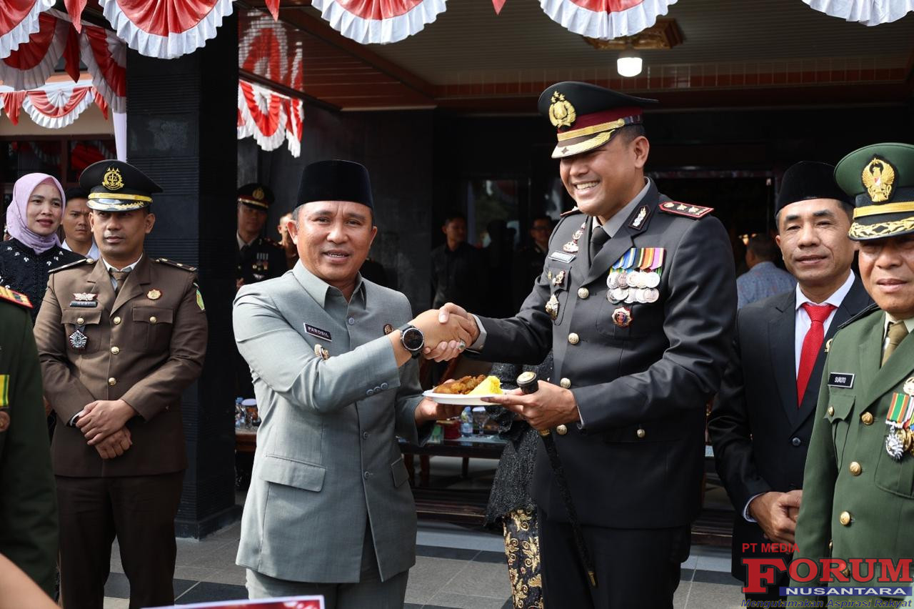 ForumNusantaranews.com Bupati Lampung Barat, Parosil Mabsus mengikuti langsung upacara peringatan Hari Ulang Tahun (HUT) ke-79 Bhayangkara yang digelar di pelataran Polres Lampung Barat, Selasa 01 Juli 2025.