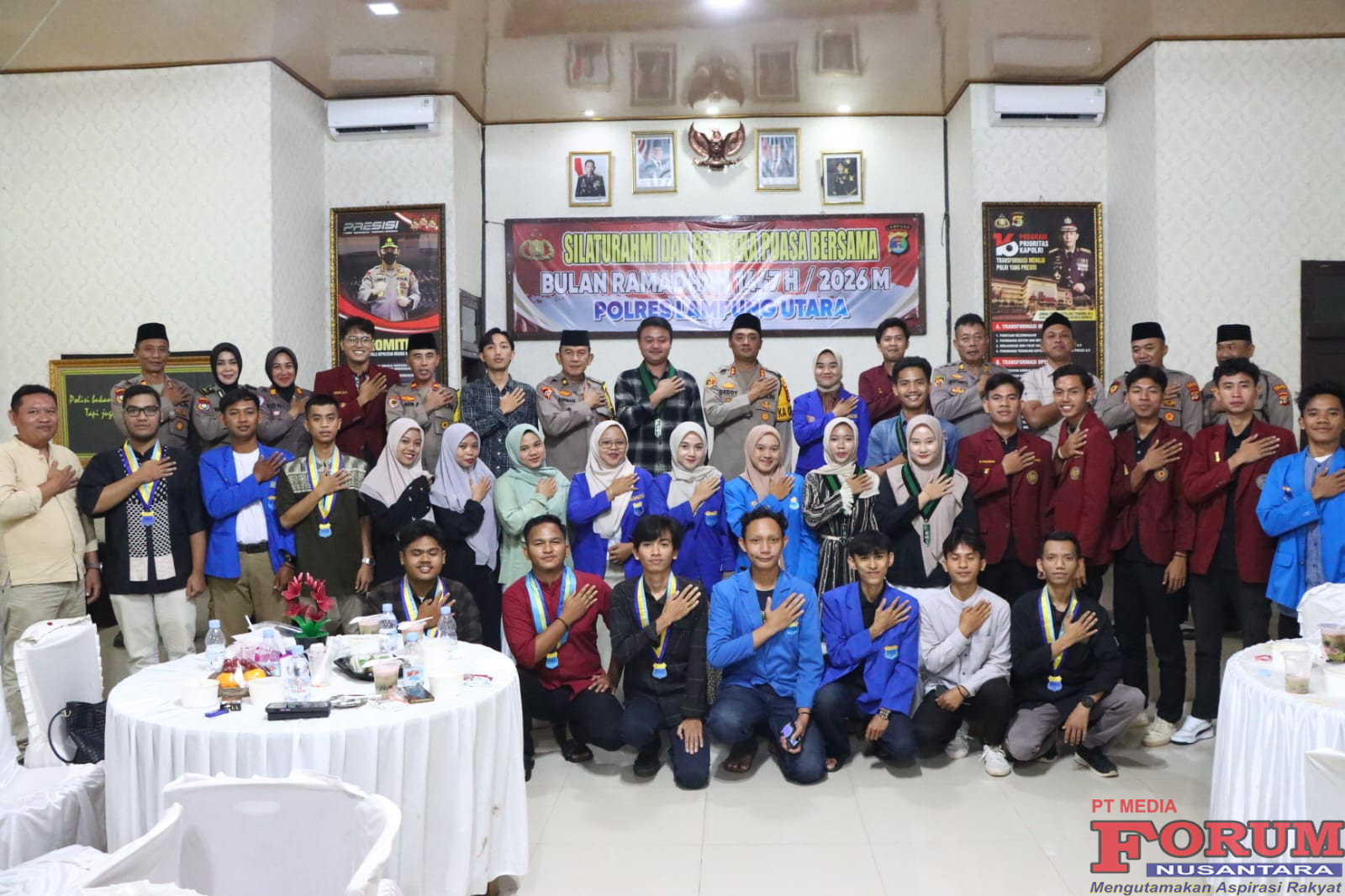 ForumNusantaranews.com LAMPUNG UTARA–Dalam upaya mempererat sinergi dengan kalangan mahasiswa, Polres Lampung Utara menggelar kegiatan silaturahmi dan buka puasa bersama di Aula Rekonfu Mapolres Lampung Utara, Kamis (26/2/2026).