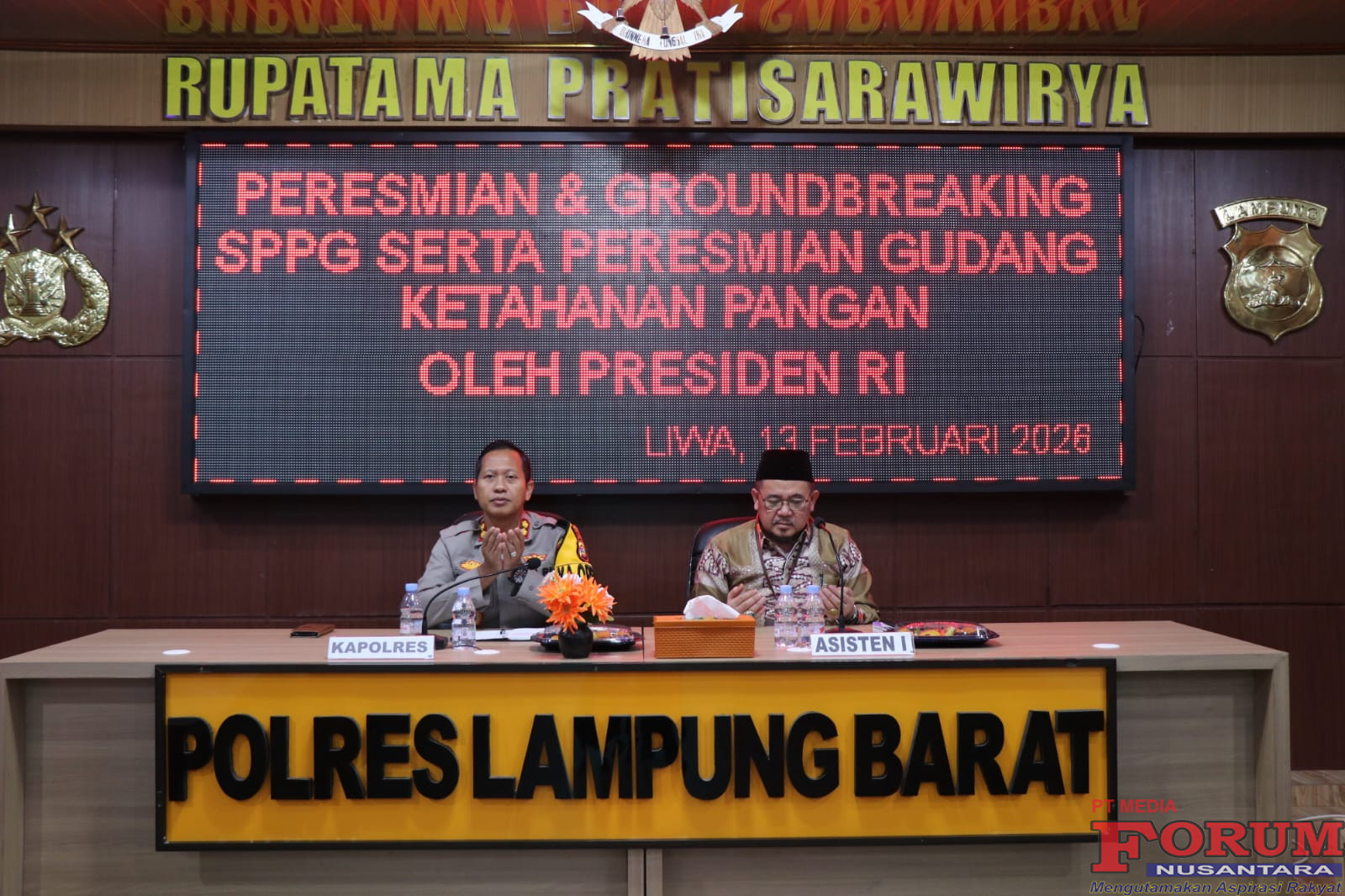 ForumNusantaranews.com LAMPUNG BARAT– Kapolres Lampung Barat AKBP Samsu Wirman, S.H., S.I.K., M.H. menghadiri kegiatan Peresmian Operasional 510 Satuan Pelayanan Pemenuhan Gizi (SPPG) Polri, Groundbreaking Pembangunan 107 SPPG Polri, serta Peresmian 18 Gudang Ketahanan Pangan Polri di 12 Polda yang dilaksanakan secara Zoom Meeting dan dipimpin langsung oleh Presiden Republik Indonesia.