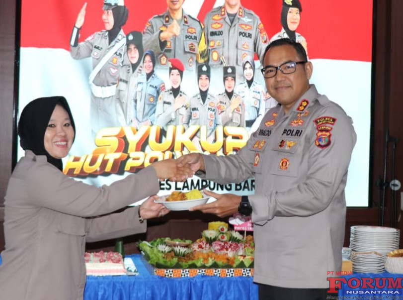 ForumNusantaranews.com LAMPUNG BARAT– Kapolres Lampung Barat AKBP Rinaldo Aser, S.H., S.I.K., M.Si., melaksanakan kegiatan syukuran dalam rangka memperingati Hari Ulang Tahun Polisi Wanita (Polwan) ke-77, yang digelar di Rupatama Pratisarawirya Polres Lampung Barat.