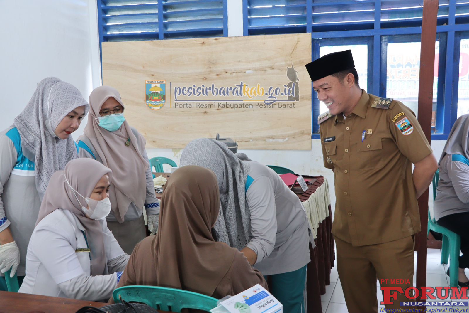 ForumNusantaranews.com PESISIR BARAT-Bupati Pesisir Barat (Pesibar), Dedi Irawan mengawal ketat pelaksanaan Pemberian Vaksinasi dalam rangka pengabdian kepada masyarakat 100 hari kerja Bupati-Wakil Bupati Pesibar, di Kecamatan Karya Penggawa, Senin (2/6/2025).