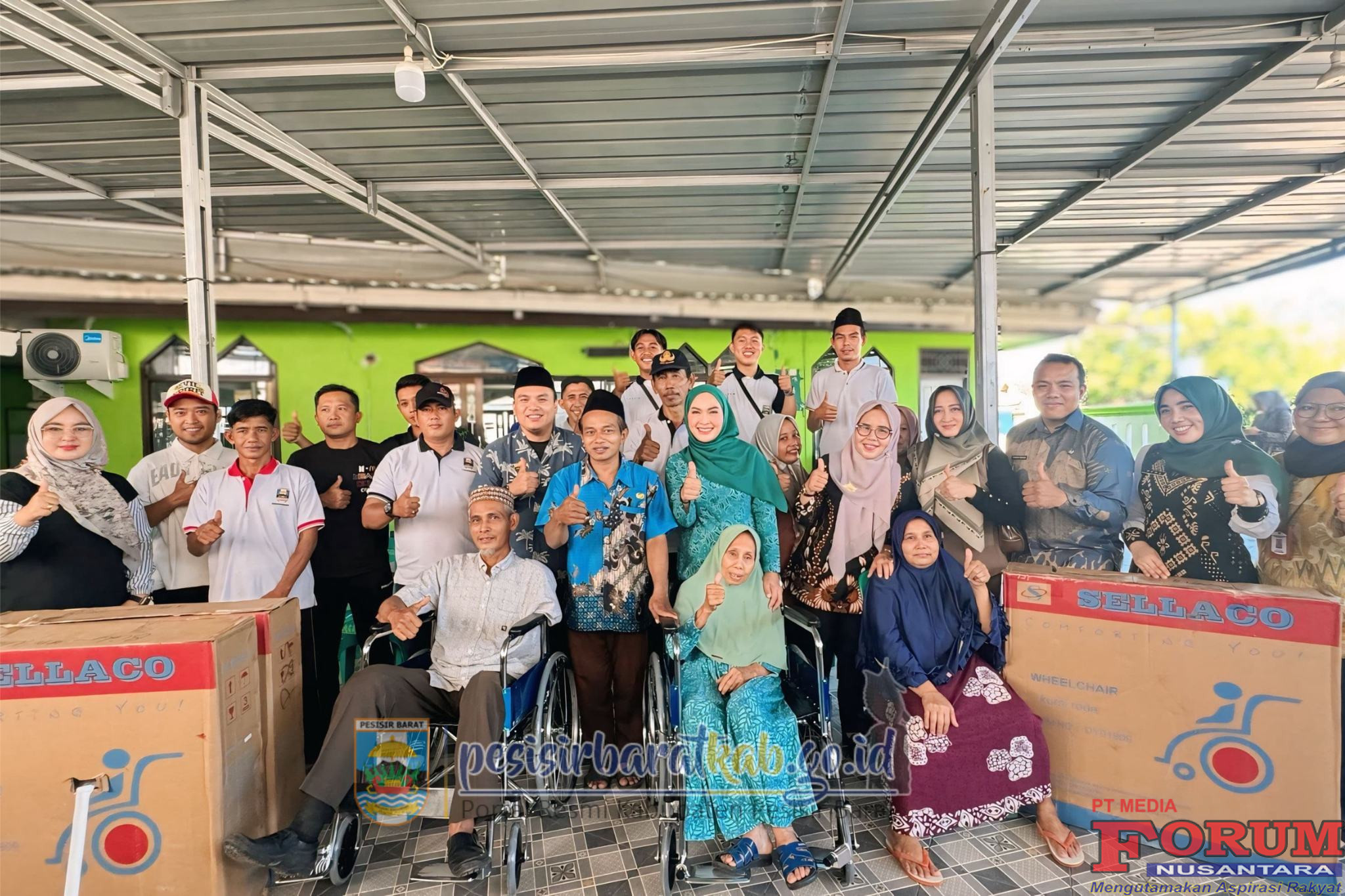 ForumNusantaranews.com PESISIR BARAT-Ketua Tim Penggerak-Pemberdayaan Kesejahteraan Keluarga (TP-PKK) Kabupaten Pesisir Barat (Pesibar), Dian Hardiyanti Dedi, S.ST., M.M., menyerahkan bantuan alat bantu kursi ruda terhadap 10 Kelurga Penerima Manfaat (KPM) penyandang disabilitas, di Halaman Masjid Muttaqodimin, Kelurahan Pasar Krui Kecamatan Pesisir Tengah, Jumat (19/9/2025).
