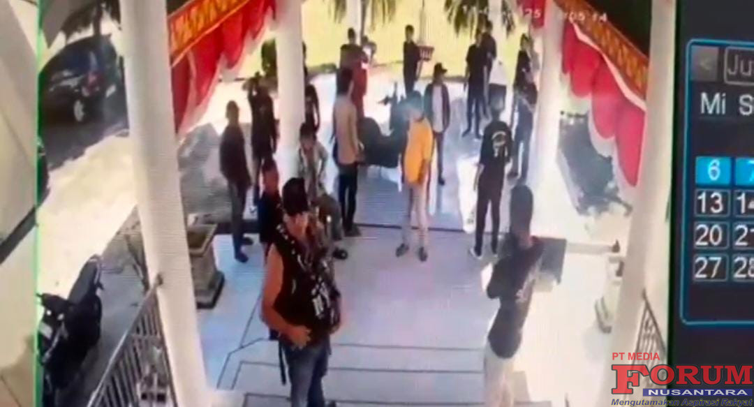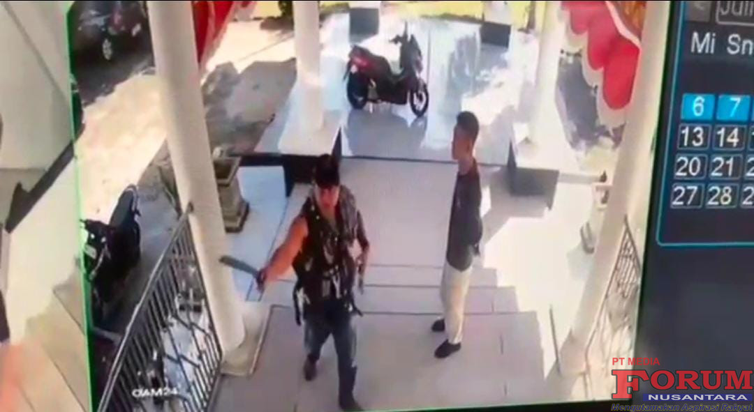 Dari vidio rekaman CCTV yang didapat tim media ini, terlihat seorang laki-laki mencabut senjata tajam didepan gedung DPRD Lampung Utara.