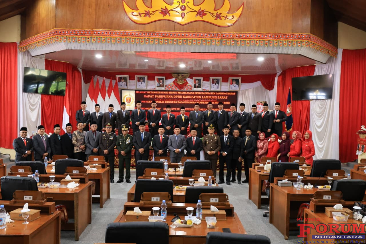 ForumNusantaranews.com Sidang tahunan menjelang Hari Ulang Tahun (HUT) ke-80 Republik Indonesia (RI) yang berlangsung di Ruang Sidang Marghasana Dewan Perwakilan Rakyat Daerah (DPRD) Lampung Barat berlangsung khidmat.