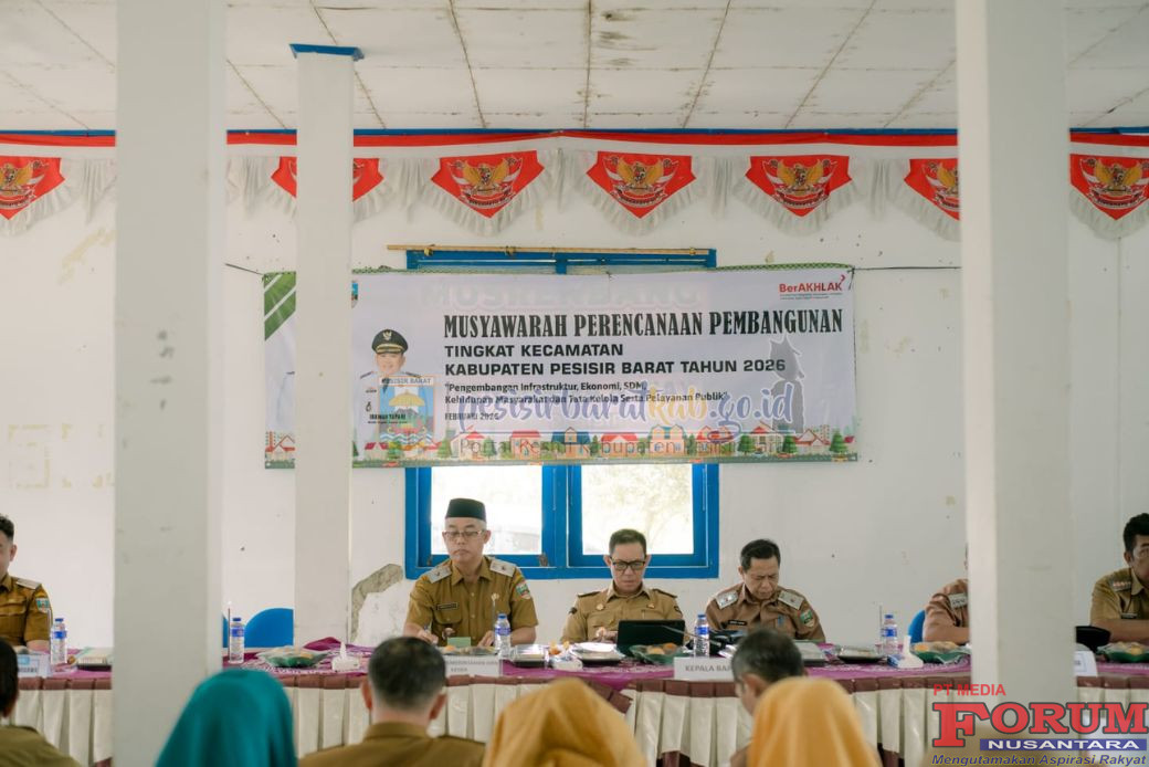 ForumNusantaranews.com PESISIR BARAT – Pemerintah Kabupaten Pesisir Barat (Pemkab Pesibar) menggelar Musyawarah Perencanaan Pembangunan (Musrenbang) tingkat kecamatan Tahun 2026 yang dilaksanakan di Aula Kantor Kecamatan Karyapenggawa, Selasa (10/02/2026).