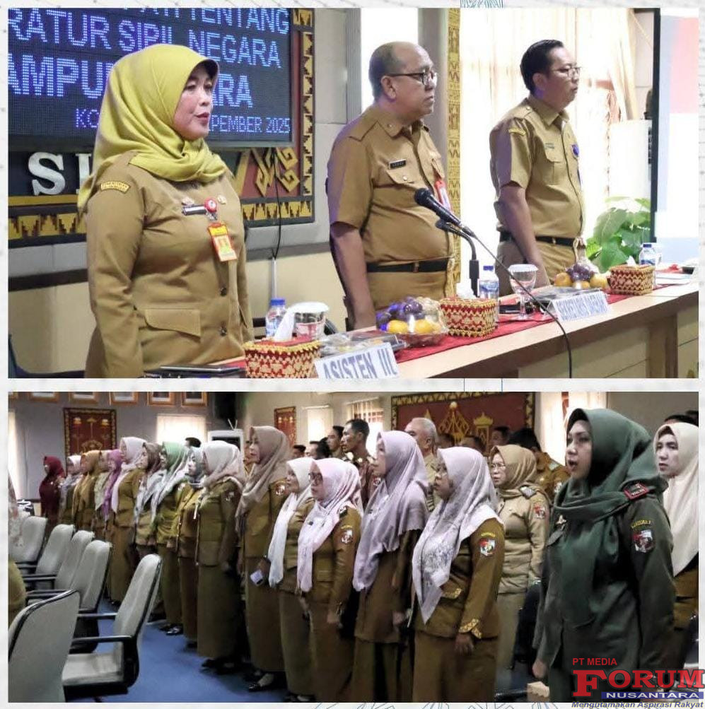 ForumNusantaranews.com LAMPUNG UTARA– Bupati Lampung Utara, Dr. Ir. H. Hamartoni Ahadis, M.Si., yang diwakili oleh Sekretaris Daerah Kabupaten Lampung Utara, Drs. H. Lekok, M.M., membuka kegiatan Sosialisasi Peraturan Bupati Lampung Utara Nomor 45 Tahun 2025 tentang Pakaian Dinas Aparatur Sipil Negara (ASN), Selasa (9/9/2025), bertempat di Aula Siger Setdakab Lampung Utara.