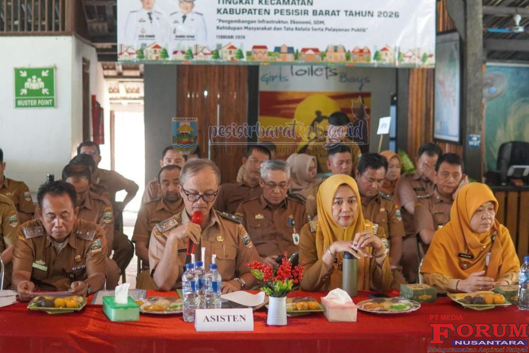 ForumNusantaranews.com PESISIR BARAT – Pemerintah Kabupaten Pesisir Barat melaksanakan Musyawarah Perencanaan Pembangunan (Musrenbang) Rencana Kerja Pemerintah Daerah (RKPD) Kabupaten Pesisir Barat Tahun 2027 yang digelar secara gabungan di empat kecamatan, yakni Kecamatan Pesisir Selatan, Kecamatan Ngambur, Kecamatan Ngaras, dan Kecamatan Bangkunat, Selasa (10/02/2026).