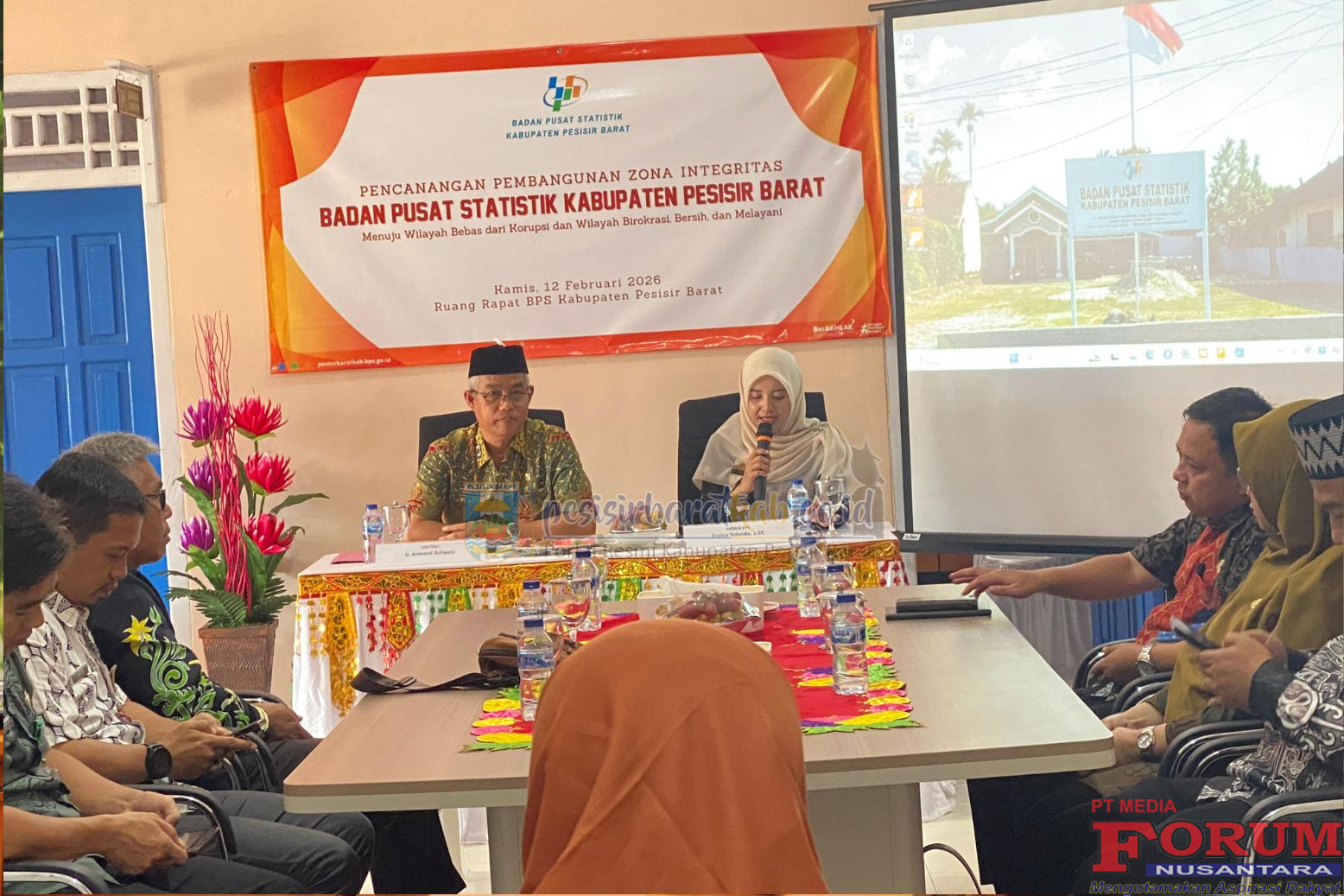 ForumNusantaranews.com PESISIR BARAT – Pemerintah Kabupaten (Pemkab) Pesisir Barat menghadiri Rapat Pencanangan Zona Integritas menuju Wilayah Bebas dari Korupsi (WBK) dan Wilayah Birokrasi Bersih dan Melayani (WBBM) yang digelar di Aula Kantor Badan Pusat Statistik (BPS) Kabupaten Pesisir Barat, Kamis (12/02/2026).
