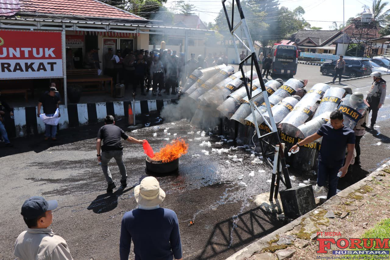 ForumNusantaranews.com LAMPUNG BARAT– Personel Polres Lampung Barat melaksanakan latihan simulasi Sistem Pengamanan Kota (Sispamkota) sebagai bentuk kesiapan dalam menghadapi berbagai potensi gangguan keamanan dan ketertiban masyarakat (kamtibmas) di wilayah hukum Polres Lampung Barat.