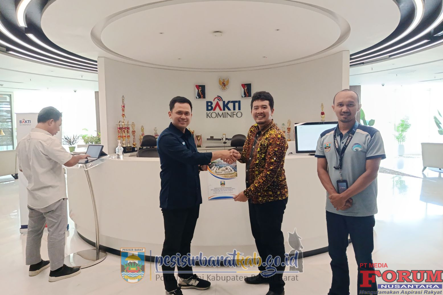 ForumNusantaranews.com Jakarta, 23 Oktober 2025 – Pemerintah Kabupaten (Pemkab) Pesisir Barat bergerak cepat memastikan seluruh wilayahnya terjangkau akses internet. Plt. Kepala Bidang Statistik dan Persandian, M. Danang Ma’ruf, M.P., S.STP didampingi Analis Data dan Informasi Rizki Agung Permana, S.Kom, mewakili Plt. Kepala Dinas Kominfotiksan, Antoni Wijaya, S.IP. Baru-baru ini melakukan kunjungan dinas ke Balai Aksesibilitas Telekomunikasi dan Informasi (BAKTI) Kementerian Komunikasi dan Digital (Komdigi) untuk memperjuangkan percepatan pembangunan infrastruktur digital. Kunjungan tersebut disambut langsung oleh Ilham Fadilah selaku PIC Platform Pengusulan Divisi Layanan TI Pemerintah BAKTI KOMDIGI.