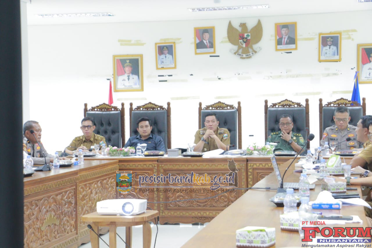 Rakor yang juga dihadiri Wakil Ketua II DPRD, Muhammad Amin Basri, Asisten III Bidang Administrasi Umum, Drs. Gunawan, M.Si., perwakilan Polres Pesibar, perwakilan Kodim 0422/Lampung Barat (Lambar), dan seluruh kepala Organisasi Perangkat Daerah (OPD) terkait itu berlangsung di ruang rapat Bupati Lantai 4 Gedung Marga Sai Batin Komplek Perkantoran Pemkab Pesibar, Senin (26/5/2025).