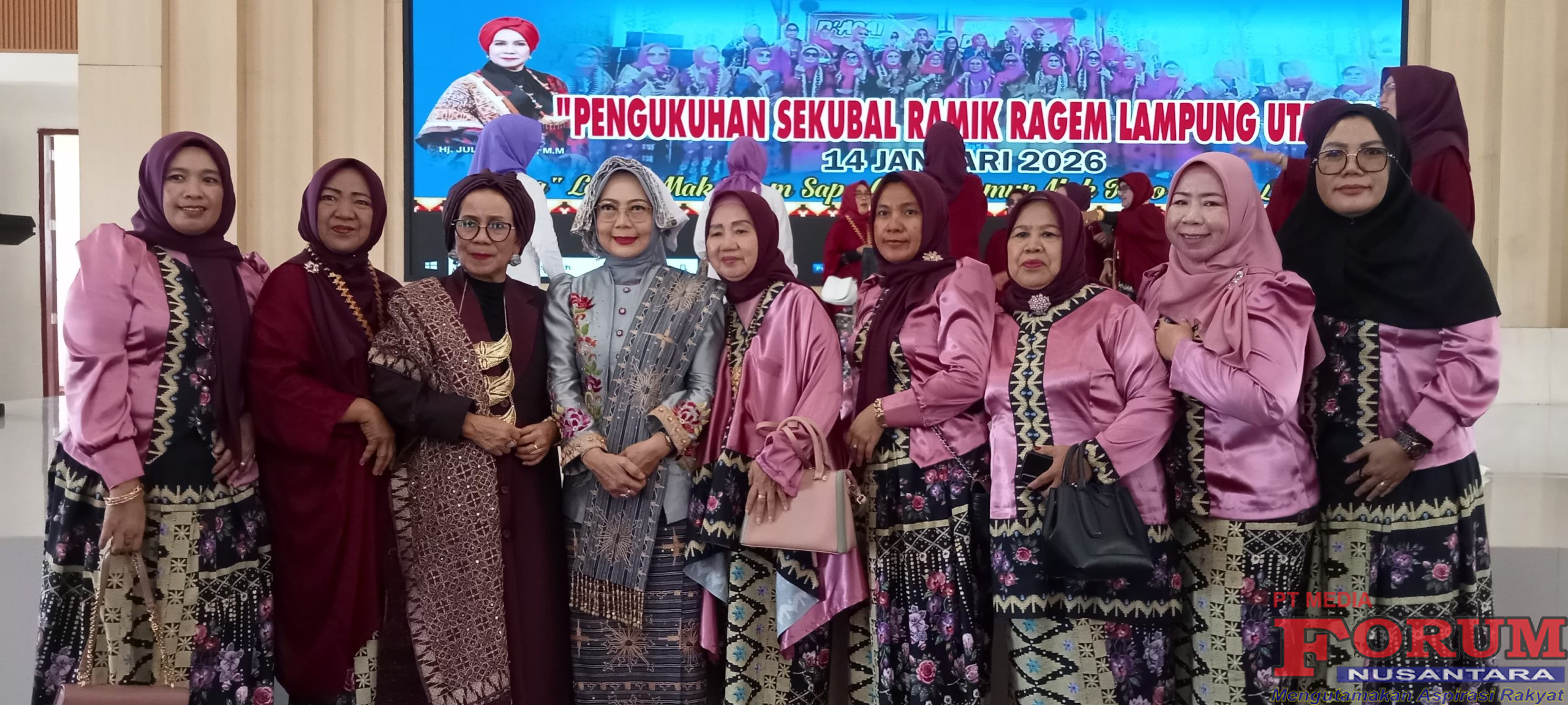 ForumNusantaranews.com LAMPUNG UTARA– Pejabat (Pj) Sekda Kabupaten Lampung, Dra. Dina Prawitarini, MM, mengukuhkan Sekubal Ramik Ragem Lampung Utara, yang berlangsung di gedung Pusiban Kotabumi Kabupaten setempat. Rabu (14/1/2025)
