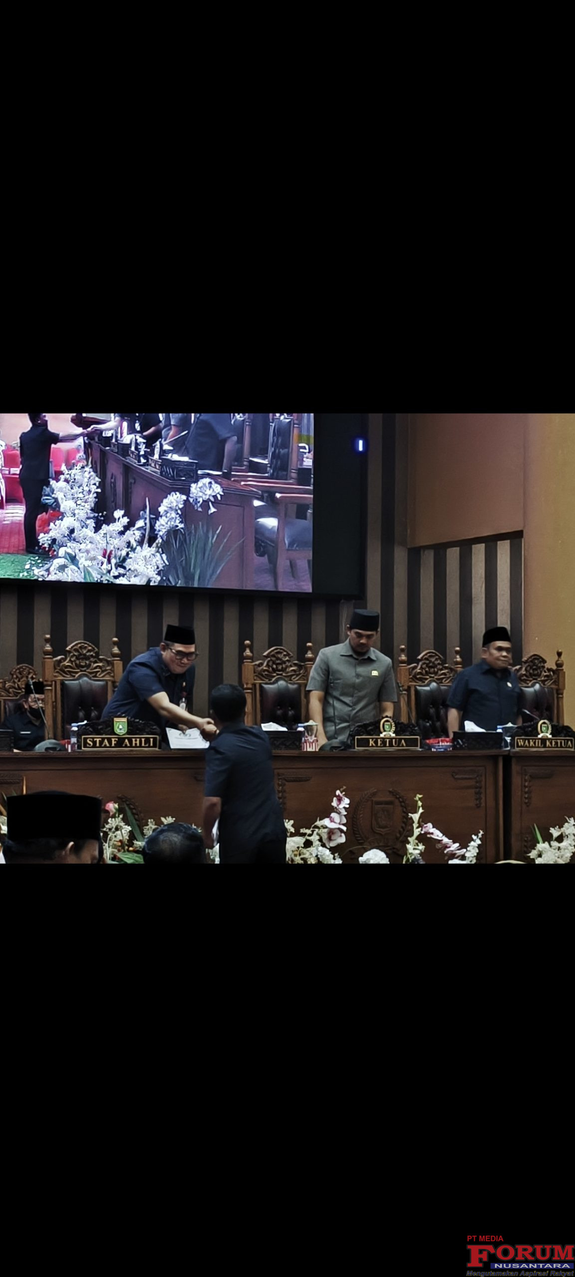 Dihadiri Ketua DPRD Tanah Bumbu Andrean Atma Maulani.SH.SH.MH dipimpin Wakil Ketua l DPRD Tanah Bumbu H.Hasanudin.AM.S,Ag.MA serta Anggota DPRD Tanah Bumbu, dihadiri Bupati Tanah Bumbu yang diwakili Staf Ahli Bidang Ekonomi,Keuangan dan Pembangunan Dwi Dibyo Raharjo,Forkopimda Tanah Bumbu,Asisten dan Staf,Kepala SKPD,Instansi,Lemabaga,Perbankan, Kepala BUMD,Organisasi serta tamu undangan lainnya.