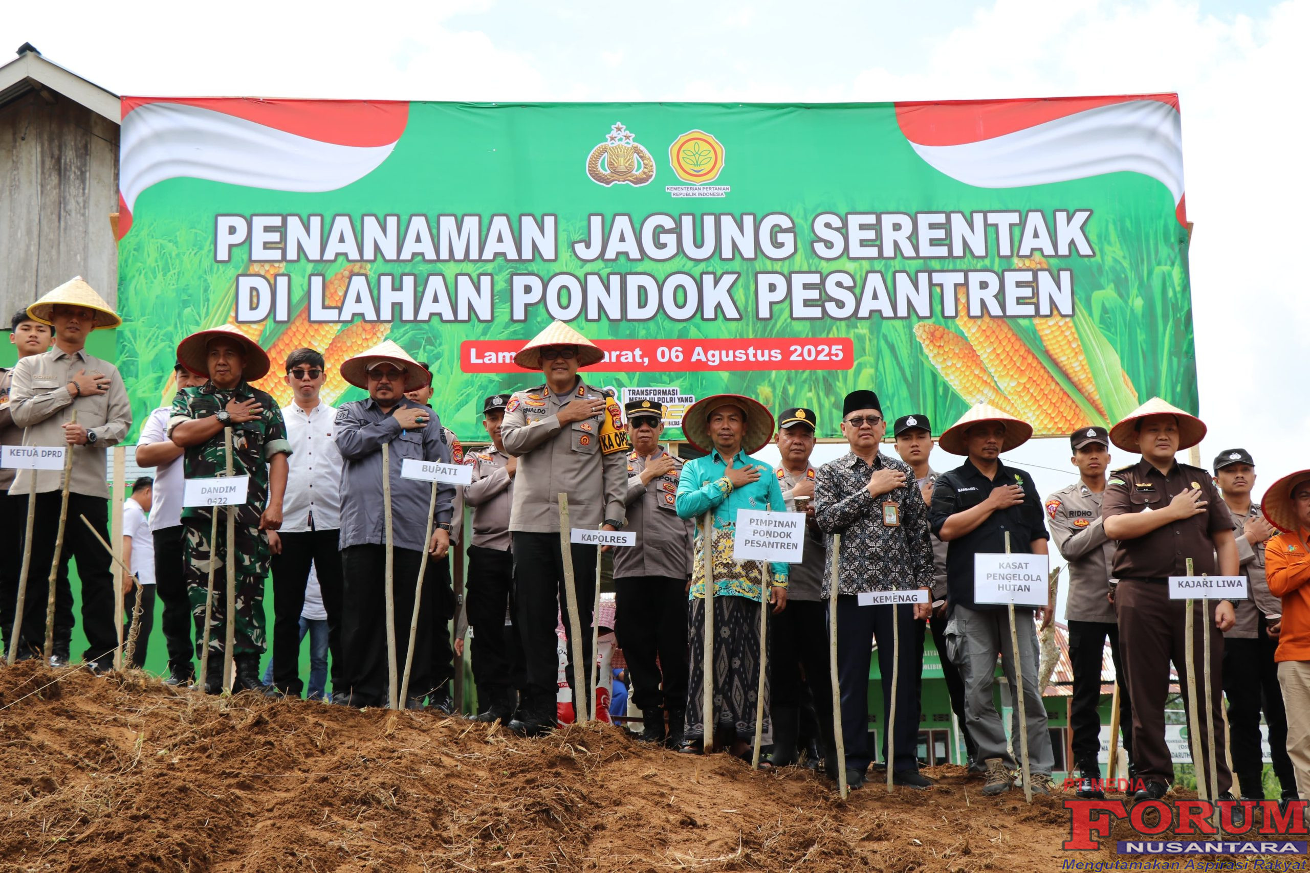 ForumNusantaranews.com LAMPUNG BARAT, 06 Agustus 2025 – Dalam rangka mendukung program swasembada pangan nasional, Polres Lampung Barat melaksanakan kegiatan penanaman jagung secara serentak di Pondok Pesantren Dharut Tholibin, Pekon Simpang Serdang, Kelurahan Way Mengaku, Kecamatan Balik Bukit, Kabupaten Lampung Barat.