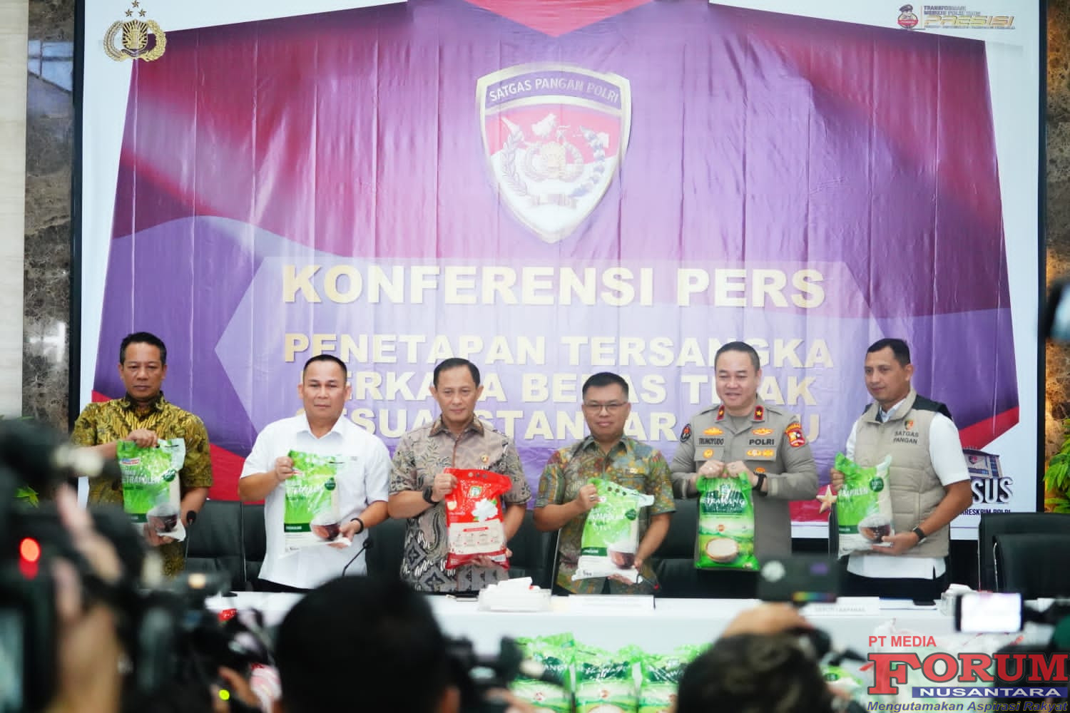 ForumNusantaranews.com Jakarta – Satgas Pangan Polri menetapkan tiga pejabat dari perusahaan produsen beras PT FS sebagai tersangka dalam kasus produksi dan peredaran beras yang tidak sesuai dengan standar mutu nasional. Penetapan tersangka ini diumumkan dalam konferensi pers yang digelar di Mabes Polri, Jumat (1/8), dan dipimpin langsung oleh Direktur Tindak Pidana Ekonomi Khusus Bareskrim Polri, Brigadir Jenderal Polisi Helfi Assegaf, selaku Kasatgas Pangan Polri.