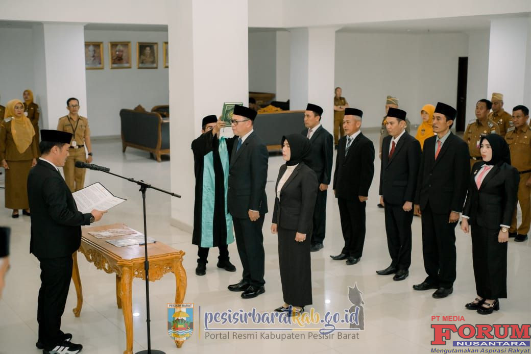 ForumNusantaranews.com PESISIR BARAT – Bupati Pesisir Barat (Pesibar), Dedi Irawan, secara resmi melantik para pejabat Pimpinan Pratama di lingkungan Pemerintah Kabupaten Pesisir Barat. Kegiatan berlangsung di Lobi Utama Teluk Stabas, Gedung Marga Sai Bathin, pada Senin (12/01/2026).