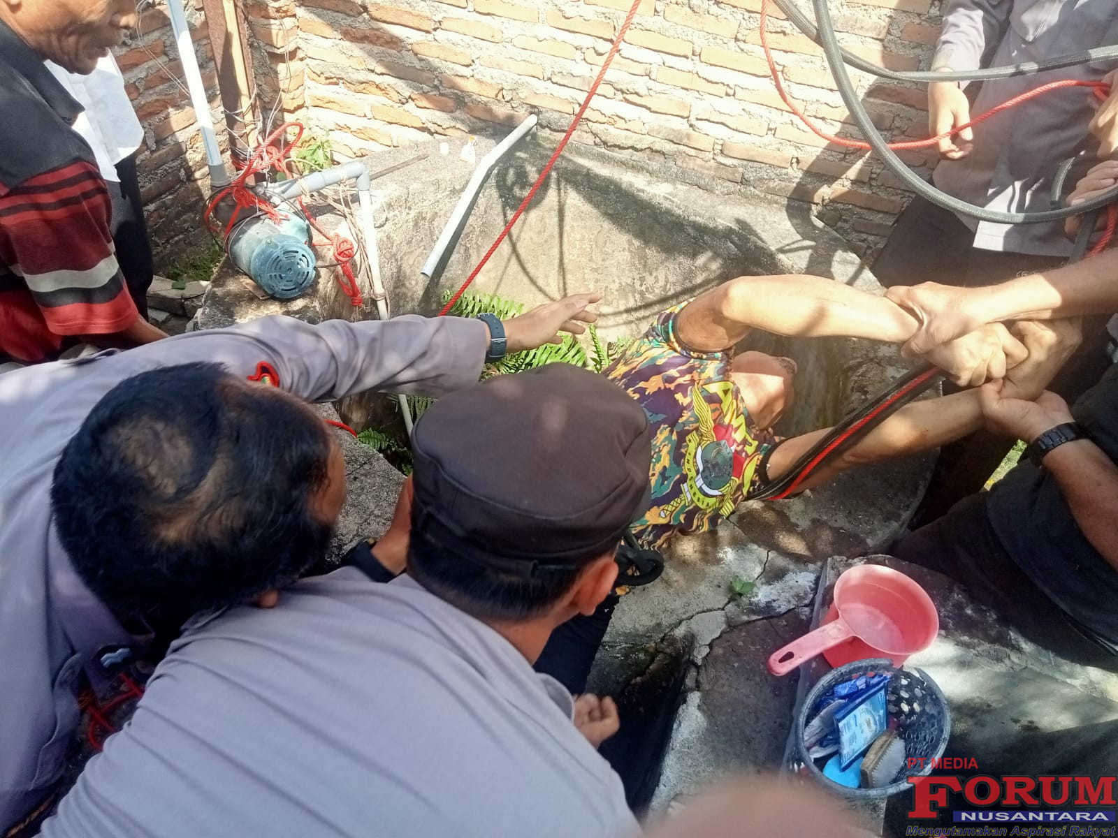 Arifin terjebak di sumur usai tidak sengaja terpeleset saat berusaha membetulkan mesin pompa air.