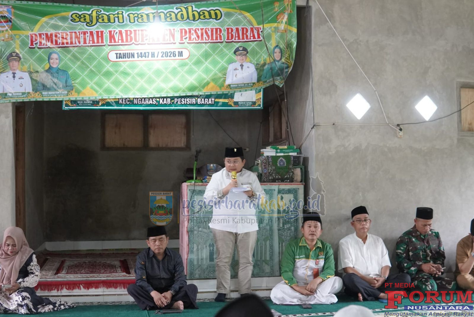 ForumNusantaranews.com PESISIR BARAT, – Wakil Bupati Kabupaten Pesisir Barat, Irawan Topani SH., M.Kn, menghadiri kegiatan Safari Ramadhan 1447 Hijriah yang merupakan gabungan tiga kecamatan, yakni Kecamatan Ngambur, Kecamatan Ngaras, dan Kecamatan Bangkunat, Kegiatan Safari Ramadhan tersebut dipusatkan di Masjid Al-Munawar, Pekon Padang Dalam, Kecamatan Ngaras, dan berlangsung khidmat serta penuh kebersamaan (Selasa, 3 Maret 2026).