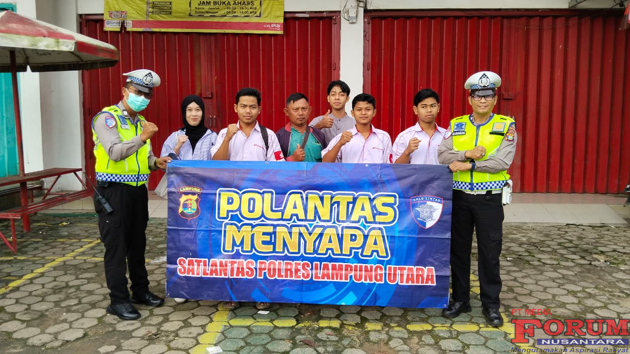 ForumNusantaranews.com LAMPUNG UTARA–Satuan Lalu Lintas Kepolisian Resor Lampung Utara menggelar kegiatan Polisi Menyapa dan pendidikan masyarakat (Dikmas) kepada pengguna jalan serta mekanik dan konsumen dealer sepeda motor Honda di Jalan Alamsyah, Kamis (26/2/2026) pukul 09.00 WIB.
