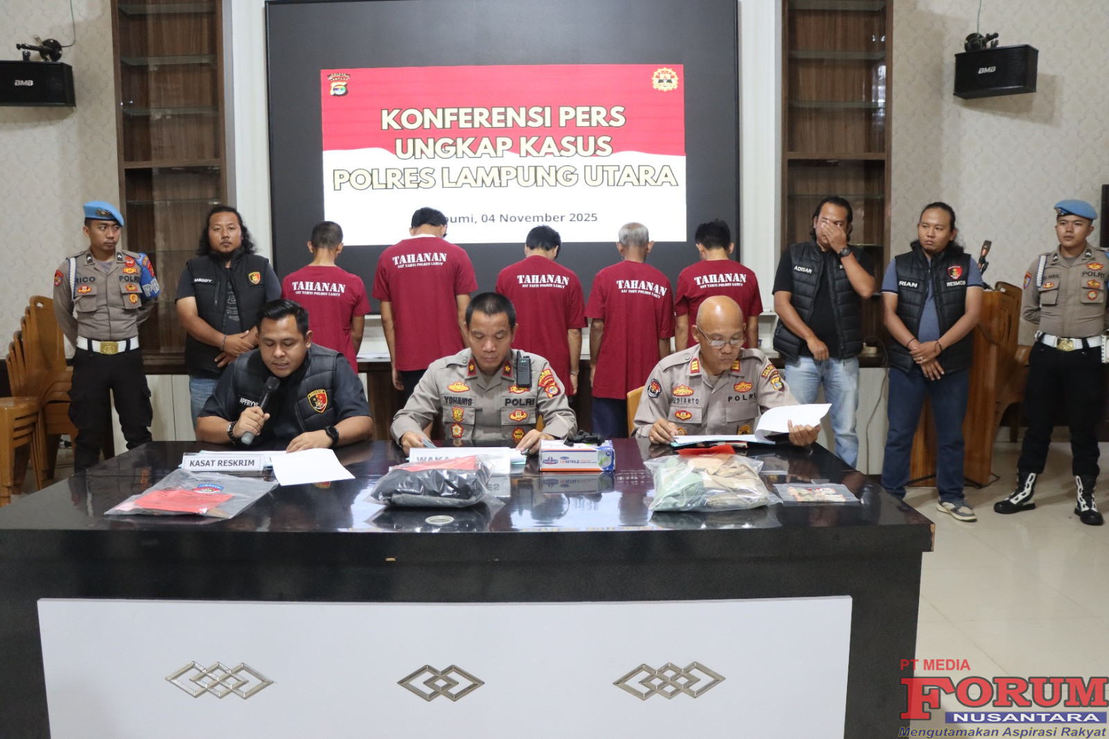 Hal tersebut disampaikan oleh Waka Polres Kompol Yohanis mewakili Kapolres Lampung Utara AKBP Deddy Kurniawan didampingi Kasat Reskrim AKP Apfryyadi Pratama dan Kasi Humas AKP Budiarto saat menggelar Konferensi Pers, Selasa (4/11/25).