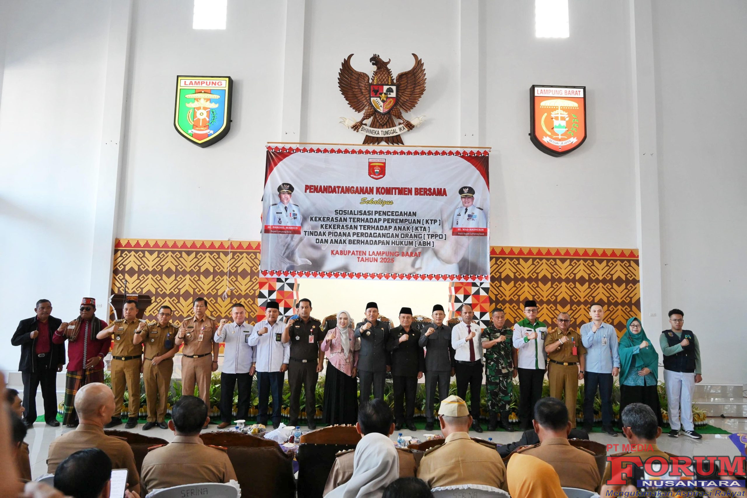 ForumNusantaranews.com Bentuk keseriusan terhadap penanganan kekerasan terhadap perempuan dan anak, Bupati Lampung Barat Parosil Mabsus melakukan penandatanganan kesepakatan bersama di Lamban Pacasila Kecamatan Balik Bukit, Senin 16 Juni 2025.
