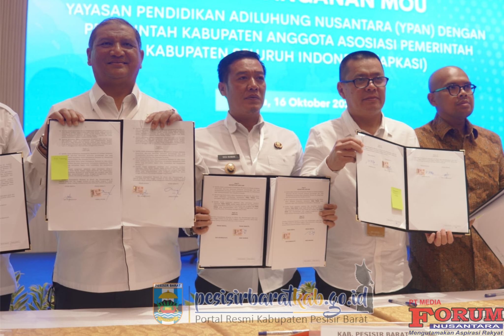 ForumNusantaranews.com PESISIR BARAT-Bupati Pesisir Barat (Pesibar), Dedi Irawan, menandatangani Memorandum of Understanding (MoU) dengan Yayasan Pendidikan Adiluhung Nusantara (YPAN) tentang kerjasama program dan kegiatan peningkatan Sumber Daya Manusia (SDM) di Pesibar, di Ruang Auditorium Lantai 2, Gedung D, Komplek Kementerian Pendidikan Dasar dan Menengah, Jakarta, Kamis (16/10/2025).